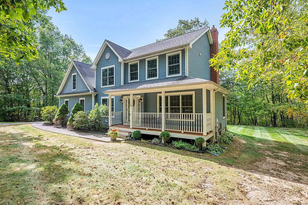 Come and explore a combination of tranquility and nature in this picturesque neighborhood setting! The welcoming front porch is sure to capture your attention. This open and bright floor plan boasts many windows that bring in the outdoor views in every room. Gleaming hardwood floors are found throughout the first floor. A formal living room can be a great place to entertain, or perhaps it will serve as your in-home office! You will surely enjoy movie or game times in your large family room, while enjoying a warm fire, in the wood burning fireplace, on cold winter evenings. An eat-in kitchen offers a breakfast bar, stunning cherry cabinets, stainless appliances, granite counters and travertine tiled backsplash as well as a pantry. Just off the kitchen is the formal dining room sure to offer many delightful evenings spent with family and friends. The mudroom completes the first floor with a half bath, the laundry room and the perfect "drop zone" as everyone comes in from the garage. Upstairs you will find the lavish primary suite with a tray ceiling, a large walk-in closet and full bath with a jacuzzi tub and separate shower. An additional three bedrooms, all with large closets as well as a full bath, are also found upstairs. Dining al fresco on your private deck while overlooking the landscaped grounds and the established trees, is sure to be your favorite place to relax. You will be taken by the winter views atop this sought after area on Johnnycake Mountain.