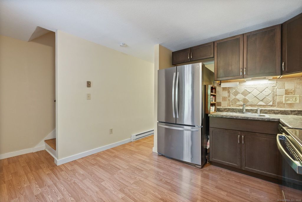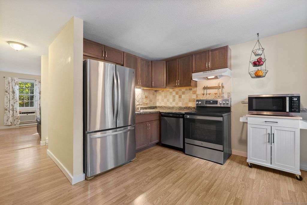 Welcome to Towpath Condominiums-move-in ready and tucked away in a quiet corner of Avon. This 2-bedroom, 1.5-bath townhouse offers straightforward, smart living with access to nature and convenience you'll appreciate. The main level flows from the comfortable living room to a functional eat-in kitchen-no awkward rooms, just space that works. Vinyl flooring throughout keeps things easy and clean. Appliances are nearly new (brand-new dishwasher, others ~2 years old), so you're set for years. Upstairs are two well-sized bedrooms with great closet space, and an updated full bath that adds a modern touch. Bonus: your private laundry room inside the unit. The under-house garage and generous storage space let you reclaim your living area and still tuck away gear, hobbies, or seasonal items. Outside, you're surrounded by woods in a peaceful community setting, just minutes from the Shops at Nod Brook on Route 44 and local favorites like Max a Mia and DaCapo. The Rails-to-Trails path runs nearby-perfect for a morning jog or a Sunday bike ride. Whether you're a first-time buyer or looking for a simpler, smarter home in Avon, this place hits the mark. Low maintenance, big value, great location. Don't miss out.