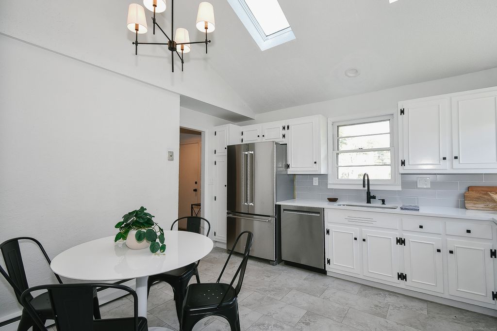Beautiful sun-filled home in a sought-after neighborhood! Completely renovated from top to bottom, new kitchen, 2 new bathrooms. Spectacular open layout with gleaming hardwood floors, filled with natural light makes you feel like you are in brand new construction! Eat-in kitchen with new range, dishwasher and fridge, is bright with sun shining through the sky light and plenty of cabinets for storage. Gorgeous living room and dining with brand new oak floor and cozy fireplace and sliders lead to a large freshly-painted deck perfect for entertaining. Upstairs you will find 3 generously sized bedrooms, including the primary with 2 closets for extra storage. Central AC was replaced in 2013 and a downstairs level provides space for office, gym, playroom or den! Laundry room/mudroom is directly off of the attached garage. Enjoy the quiet street while still close to schools and Bishops Corner. State of the art landscaping are the highlight of this beautiful level yard. This one won't last! HIGHEST AND BEST OFFER requested by SUNDAY 9/28 by 5 PM