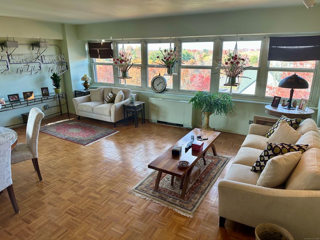 Rarely Available! A 10th floor 2 Bedroom Corner unit with stunning westerly views! This spacious one-level condo has two bedrooms offering breathtaking sunset and city views through expansive panoramic windows in all rooms. The open-concept floor plan is great for entertaining, and features beautiful hardwood flooring throughout, abundant natural light, and generous closet space. The oversized primary suite includes a private ensuite bath, while the second bedroom is bright and well-proportioned. Both bathrooms feature a tub/shower combination for comfort and convenience. This unit also includes a dedicated storage and has optional garage valet parking or outdoor gated parking. Monthly HOA includes access to an array of premium building amenities, including 24/7 security, a fitness center, outdoor pool, game room, community area, laundry facilities, and on-site property management, visitor parking and covers heat, hot water, air conditioning, trash/recycling and snow removal. A fantastic community offering upscale living and the convenience of a prime location near downtown Hartford, Elizabeth Park, highway access, West Hartford Center, Bradley International Airport and just 2 hours from Boston or New York City! Subject to Probate. Listing agent is related to the seller.