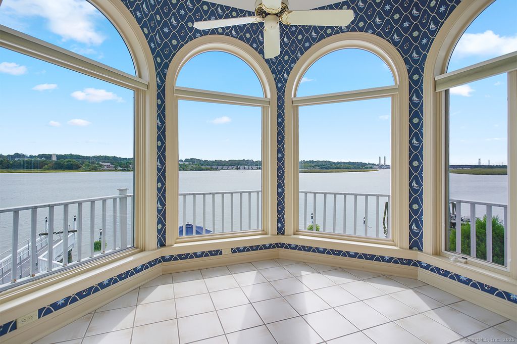 Welcome to this stunning waterfront retreat on the scenic Housatonic River, offering panoramic views, luxury, and comfort. Perfect for relaxing or entertaining, this home features 3 spacious bedrooms, 3.5 baths, and a finish able bonus room above the 2-car garage-ideal for a guest suite or office. Elevator to all three levels provides added convenience. A stone wall and gated entry lead to a paver driveway, setting the stage for what's inside. The main floor boasts a sunlit living room with a fireplace and deck overlooking the pool and river. The kitchen, dining room, family room, solarium, and home office all offer beautiful water views. The lower level is an entertainer's dream: a second kitchen, stone fireplace, sauna, steam room, Jacuzzi, two bedrooms, two full baths, and a gym. Walk out to your private pool, hot tub, and dock for direct river access. The entire upper level is dedicated to the luxurious primary suite with two walk-in closets, a cedar closet, fireplace, private balcony, and a spa-like en-suite bath. Whether hosting summer gatherings, enjoying quiet nights by the fire, or taking in the serene river views from nearly every room, this exceptional home offers the ultimate in waterfront living.
