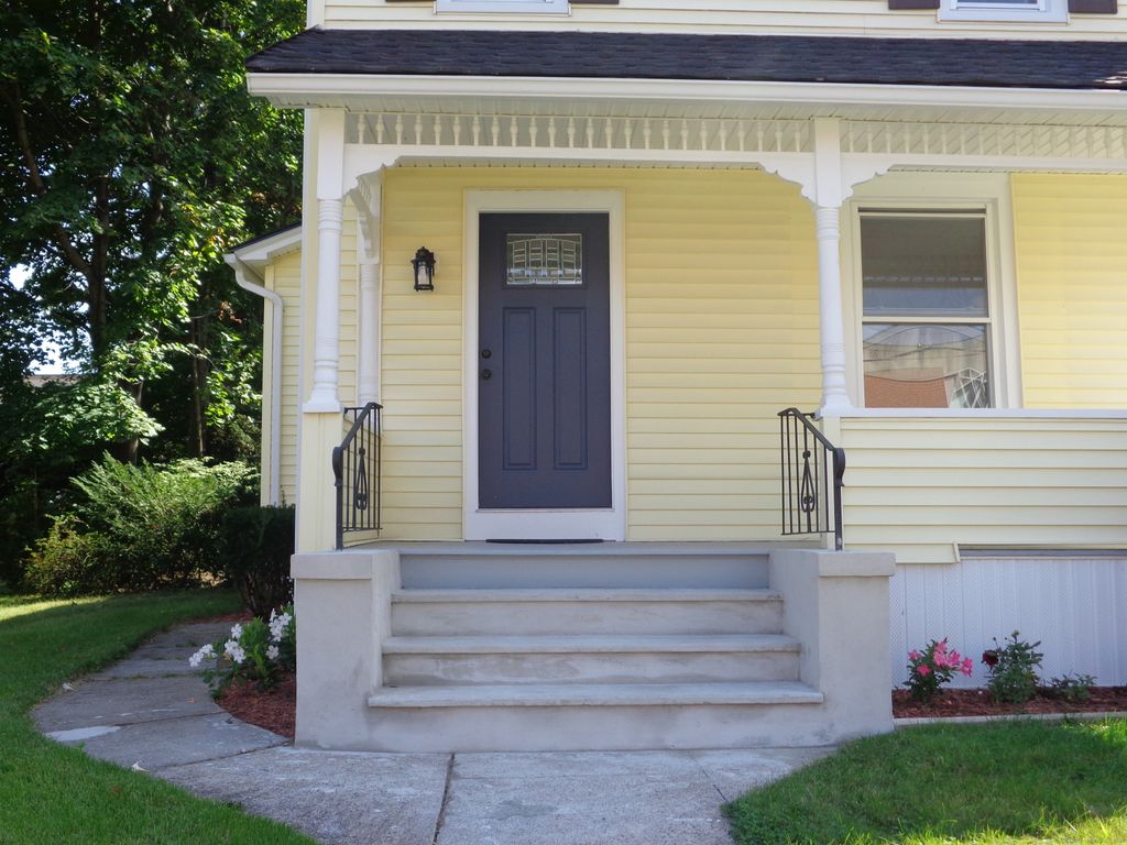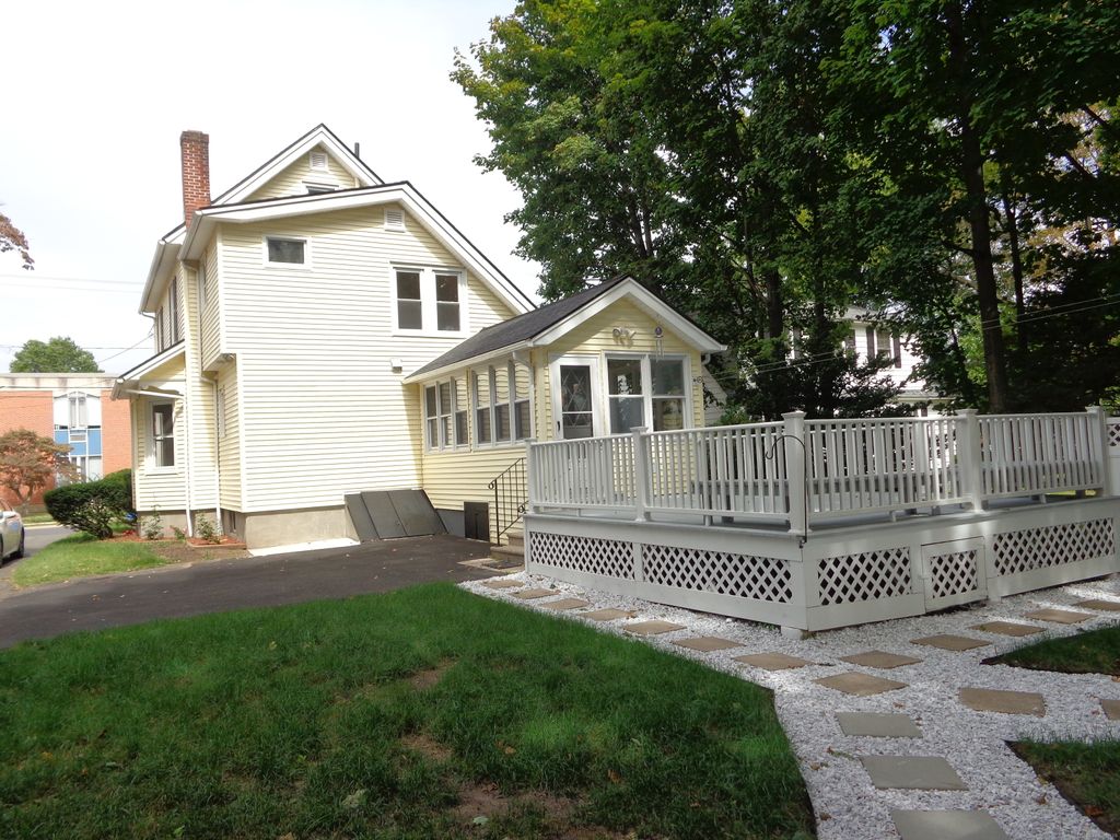 Stunning totally remodeled 1900 Colonial with modern upgrades & Classic charm. Enjoy having a custom kitchen with sleek quartz countertops and all new stainless steel appliances that lead to a bright and airy sunroom with elegant French Doors. The open living space flows seamlessly, highlighted by natural light and 9 foot ceilings. This home also features a first floor bedroom, 2 bedrooms on the second floor, one which is the Primary Bedroom that has a room off it that can be used as an office or nursery or.... Each level has a full bath. Also a very special surprise - a completely finished 3rd floor. When stepping outside you'll enjoy an oversized deck with three sides fenced for privacy and enjoyment. Come in and fall in love with your new home.