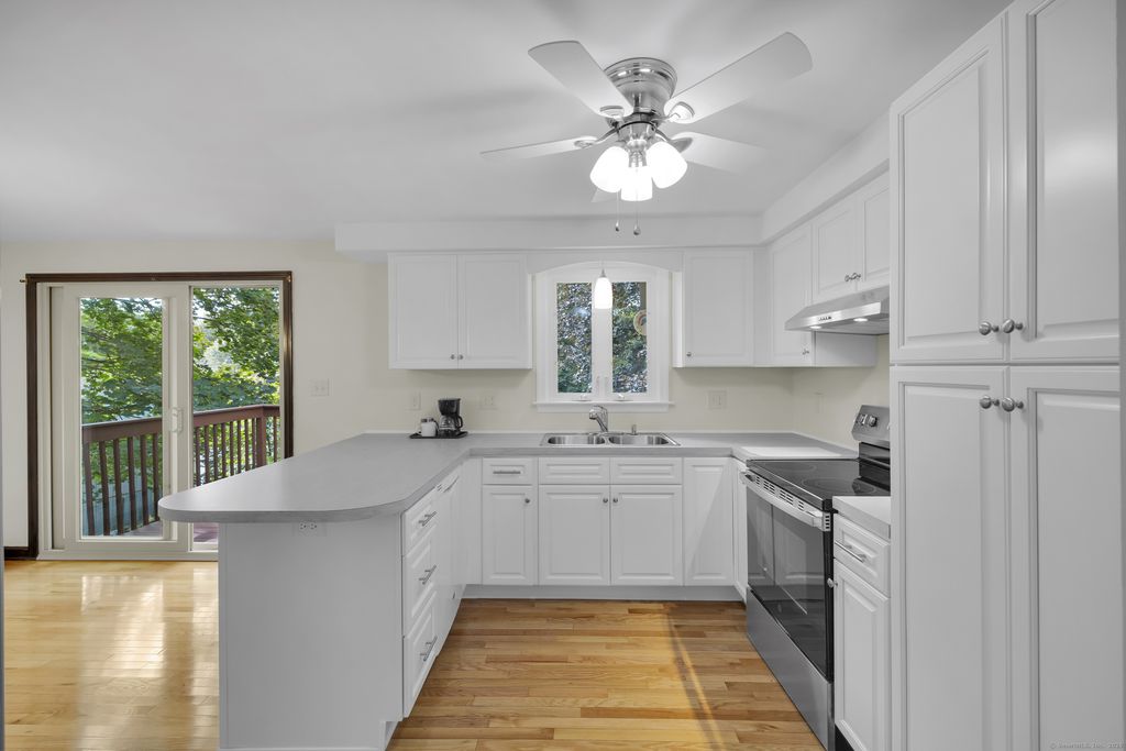 Nothing to do but move into this picture perfect home. Brand new kitchen just installed. New cabinets, ctops, floors, appliances, painted, new insulation in attic and gleaming hardwood floors. Large living room, kitchen din area with sliders to rear deck, three good sized bedrooms, family room with 1/2 bath, bar setup and fireplace. Laundry room off family room. Enjoy the private rear yard. Great location next to everything. Don't miss out take a look asap!