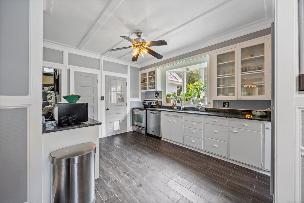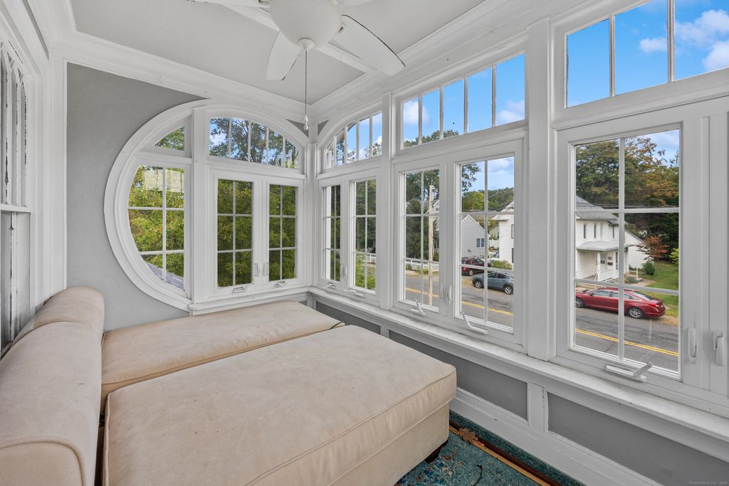 Step into a piece of history with this stately 100-year-old home, where old-world craftsmanship meets timeless elegance. From the original crown molding and ten-foot ceilings to beveled French glass doors, a warm beamed ceiling, and a grand wooden staircase, every detail whispers of an era when homes were built with artistry and care. The inviting fireplace in the office and graceful flow of rooms create a sense of comfort. The updated kitchen blends seamlessly with the home's antique character, featuring granite counters, stainless steel appliances, and a butler's pantry. Upstairs, discover three spacious bedrooms, a versatile flex room, and a beautifully finished bath. Two charming three-season rooms and partially finished third floor offer endless possibilities. Enjoy a large level lot with a brick fireplace, property abuts right to the Quinnipiac River. Two car garage and workshop for added storage. With new windows, new roof, and a location just minutes from downtown shops, & dining-this home is a rare blend of history and convenience. Make 308 Bristol Street your forever home, where every corner tells a story.