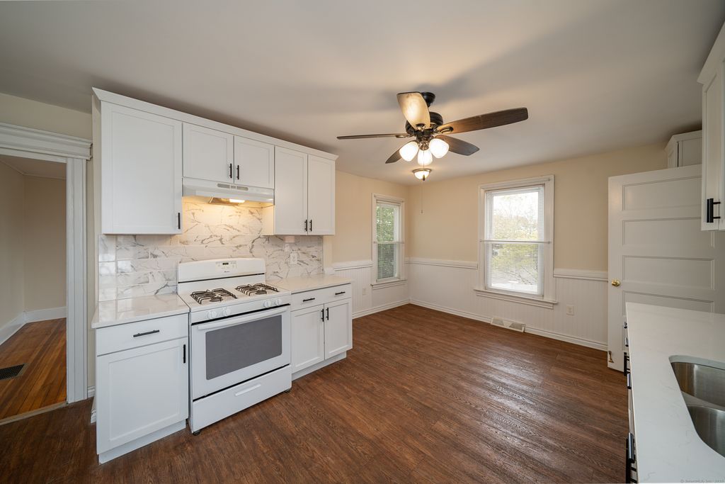 Beautifully updated and freshly painted, this first-floor, one-level rental apartment in the heart of East Haven offers spacious living with hardwood floors throughout and a generous one-bedroom, one-bath layout. The renovated kitchen includes modern finishes, and washer/dryer hookups are available on the premises. Enjoy a covered front porch overlooking the green, perfect for morning coffee or evening relaxation. With natural gas, city water and sewer, easy access to highways, and a short walk to shopping and dining, this apartment combines modern comfort with a highly convenient Main Street location.