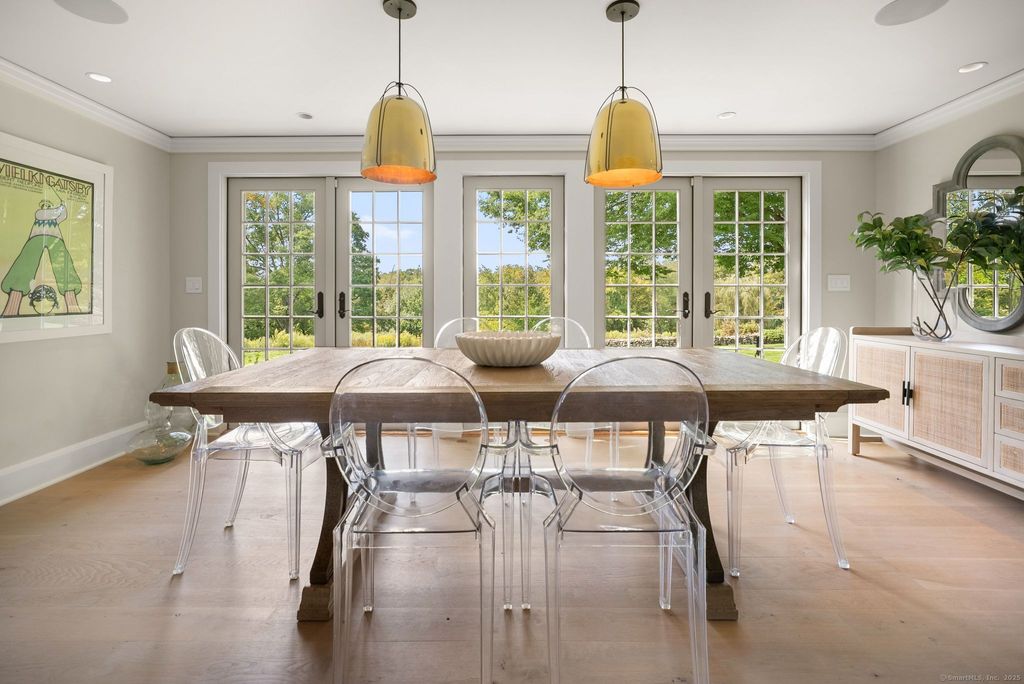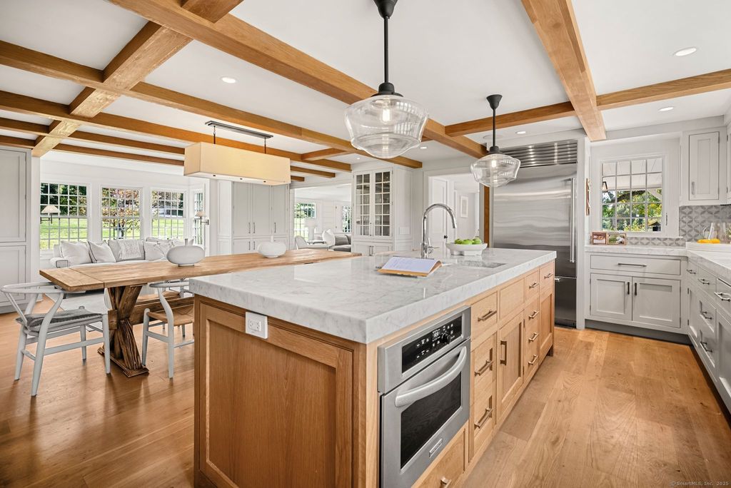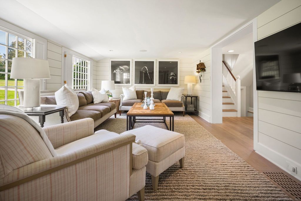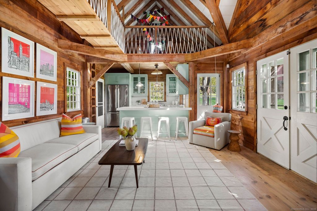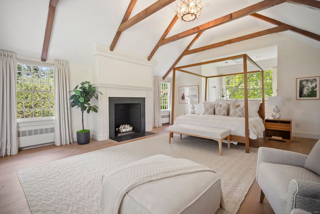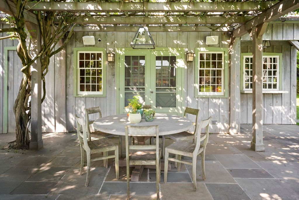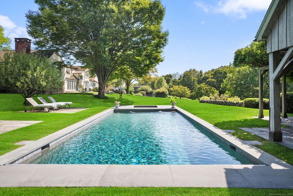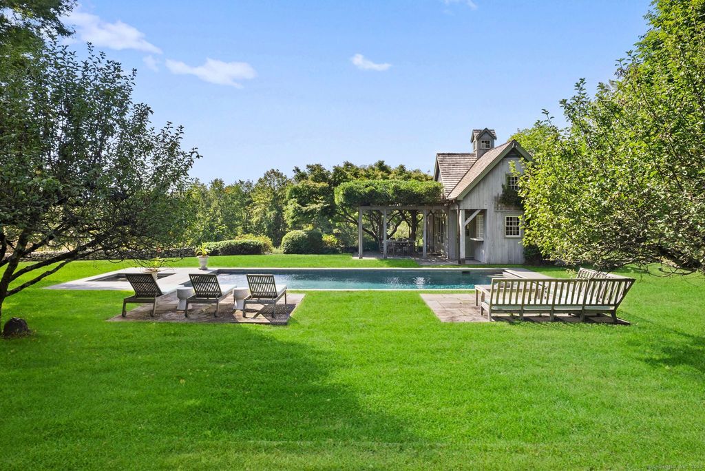 Feels like Litchfield. Lives like Fairfield. Tucked behind a private gate in Greenfield Hill, this estate offers what few properties can: sweeping space, true privacy, and serene beauty-just 60 miles from Manhattan. A long stone drive leads to the 1941 main residence, reimagined with timeless craftsmanship. Sunlight floods rooms finished with reclaimed wood beams and wide-plank floors. The chef's kitchen opens to elegant dining and living areas, with French doors to a bluestone terrace designed for candlelit dinners under the stars. A first-floor guest suite with a full bath provides flexibility and privacy, while upstairs, four additional bedrooms-including a serene primary suite-offer refined comfort and room to breathe. Beyond the home, the grounds unfold like a private resort. A two-story pool house features a full kitchen, bath, and playful loft. A climate-controlled barn houses a Trackman 4 golf simulator, sauna, and space for training or unwinding. Outdoors, discover a saltwater pool and spa, sport court, vegetable gardens, wildflower meadow with carved walking trails, orchard of apple, cherry, and peach trees, and a cider press-all with a private path leading to the Patterson Club. Whether for weekends or a lifetime, this estate elevates every season and every gathering-minutes from town, yet a world apart.