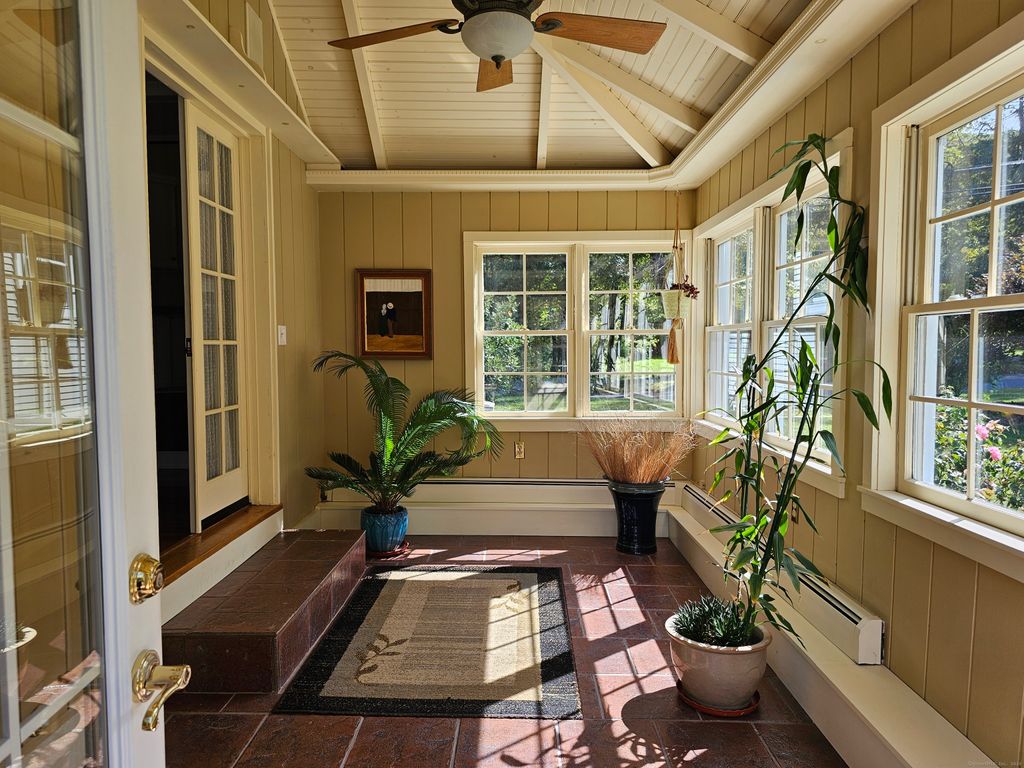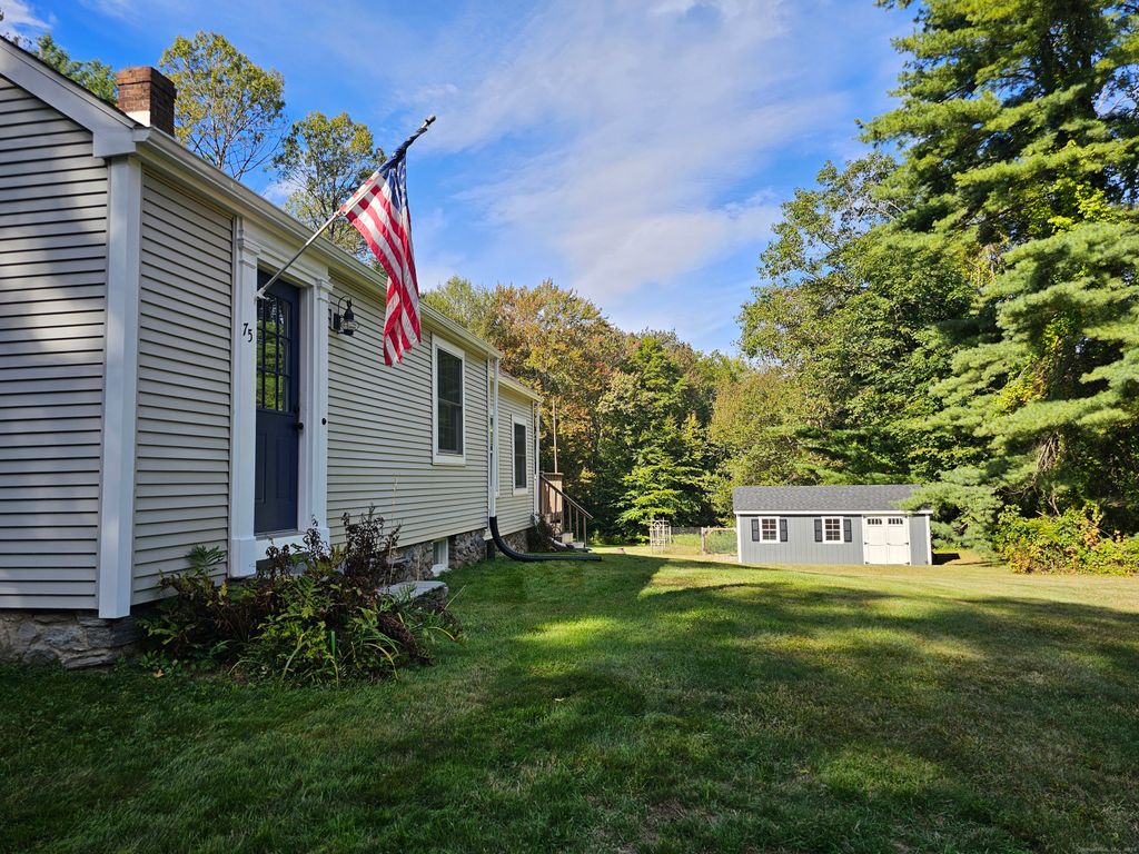 Welcome to 75 Punch Brook Rd, Burlington, CT-a charming and cozy home full of character, nestled on a private 1.65-acre lot. Move in ready, updates include vinyl siding, roof, and beautiful thermopane windows that enhance both curb appeal and energy efficiency. Inside, you'll find 2 comfortable bedrooms and 1 full bath with a tub/shower combo. The updated kitchen features granite countertops and comes complete with all appliances, making meal prep a breeze. A built-in hutch adds charm and functionality to the dining area, which-along with the primary bedroom-boasts gleaming hardwood floors. The inviting 4-season porch offers flexible space for a sunroom, family room, or quiet reading nook. The living room includes a built-in electric fireplace, perfect for cozying up on chilly evenings. Downstairs, a one-car garage is tucked under the home, and an additional garage/shed in the rear yard provides extra storage or workspace. Step outside to enjoy the large deck overlooking your peaceful and private backyard-ideal for relaxing, entertaining, or simply soaking in nature. Come make this your new home. Multiple offers Highest or Best by Thursday 9/25/25 5:00 PM