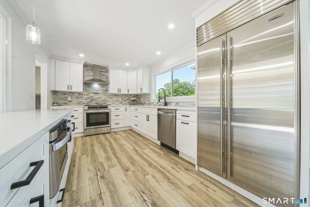Beautifully Renovated Home in Prime Norwalk Location. Welcome to 185 Newtown Avenue, a stunningly renovated home that perfectly blends modern updates with timeless charm. Located in the heart of Norwalk's desirable Cranbury neighborhood and wood pond area. This move-in ready residence offers comfort, style, and convenience. Step inside to discover a bright, open floor plan featuring gleaming hardwood floors, recessed lighting, and freshly painted interiors. The brand-new kitchen is a chef's dream, boasting custom cabinetry, quartz countertops, stainless steel appliances, and a stylish tile backsplash. The spacious living and dining areas are ideal for entertaining, while the oversized windows fill the home with natural light. Upstairs, you'll find well-appointed bedrooms with ample closet space, along with updated bathrooms showcasing designer finishes and spa-like details. Additional highlights include a peaceful and serene waterfront view, a lower level with two bedrooms, or can be used as a flexible space for an office, gym, or playroom. Private backyard perfect for gatherings or relaxing, ample parking and storage, and perfectly situated near schools, shopping, dining, and major commuter routes. This home offers both convenience and lifestyle. Don't miss the opportunity to own this beautifully renovated Norwalk gem. Schedule your private showing today!