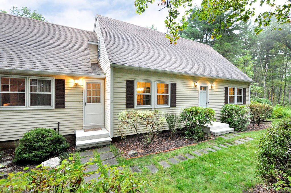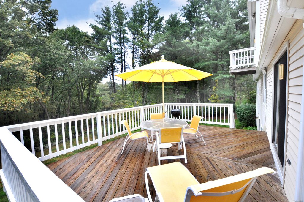 ***PRICE IMPROVED! Discover this spacious and light-filled 3 BR Contemporary Cape on a peaceful cul-de-sac in beautiful Canton Valley! Built in 1978, this home sits on over an acre of land within a popular subdivision. Step inside to find a welcoming family room featuring a cozy woodburning fireplace and sliders to a large herringbone-pattern wood deck overlooking the serene and private yard framed by trees and rock walls. The lot extends past the wall for approximately 50'. The generous family room opens to a large, eat-in kitchen updated with hardwood floors and granite counters and subway tile backsplash. A convenient first- floor half bath includes an enclosed laundry. The dining room features a charming pass-through door from the kitchen. Entry from the formal front door boasts a slate central hall with coat closet, stairs to the second floor and entrance to the formal, front-to-back living room with windows on three sides for abundant natural light. Upstairs, the primary suite offers a vaulted ceiling with skylights, a walk-in closet and a full bath with sliders to a private balcony overlooking the backyard. Two additional bedrooms with hardwood floors and another full bath on the second level. The sunny, walkout lower level provides a spacious rec room with sliders opening to the large backyard, potential office or gym area, and two storage/utility rooms.