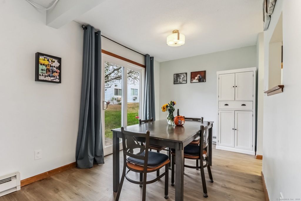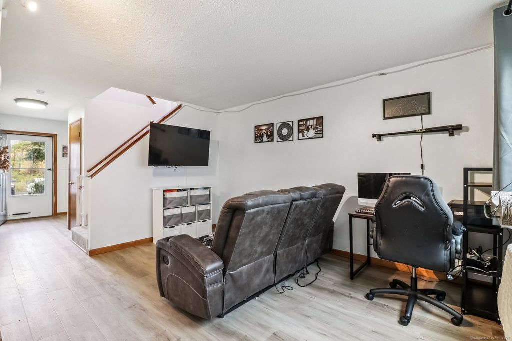 Welcome to 565 Clark Avenue, Unit 18, in Bristol, CT. This condo features two bedrooms and one and a half bathrooms, spread across 1,038 square feet of practical living space. The first floor showcases all-new LV flooring throughout, with the upper level and stairs offering brand new carpeting. The large primary bedroom includes two double walk-in closets for plenty of storage. The ample kitchen is equipped with a brand-new dishwasher and refrigerator. All the windows the storm door & slider were also recently replaced for added value and efficiency. An attached garage with an automatic door adds convenience, as well as the laundry on the second floor. Enjoy the sliders leading to the back patio, perfect for outdoor relaxation. Newer energy efficient hydronic electric heaters provide heat and there is a wall unit for AC. The HOA includes water and sewer making this a great opportunity for savvy buyers. Located close to local restaurants, shops, parks, and commuter routes, this condo offers both comfort and convenience in a quiet, well-kept complex.