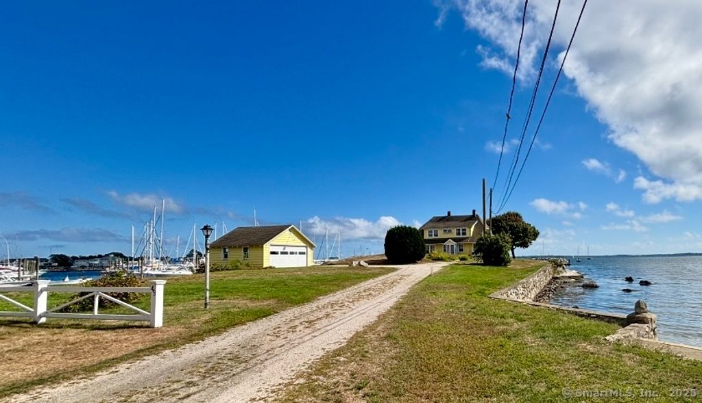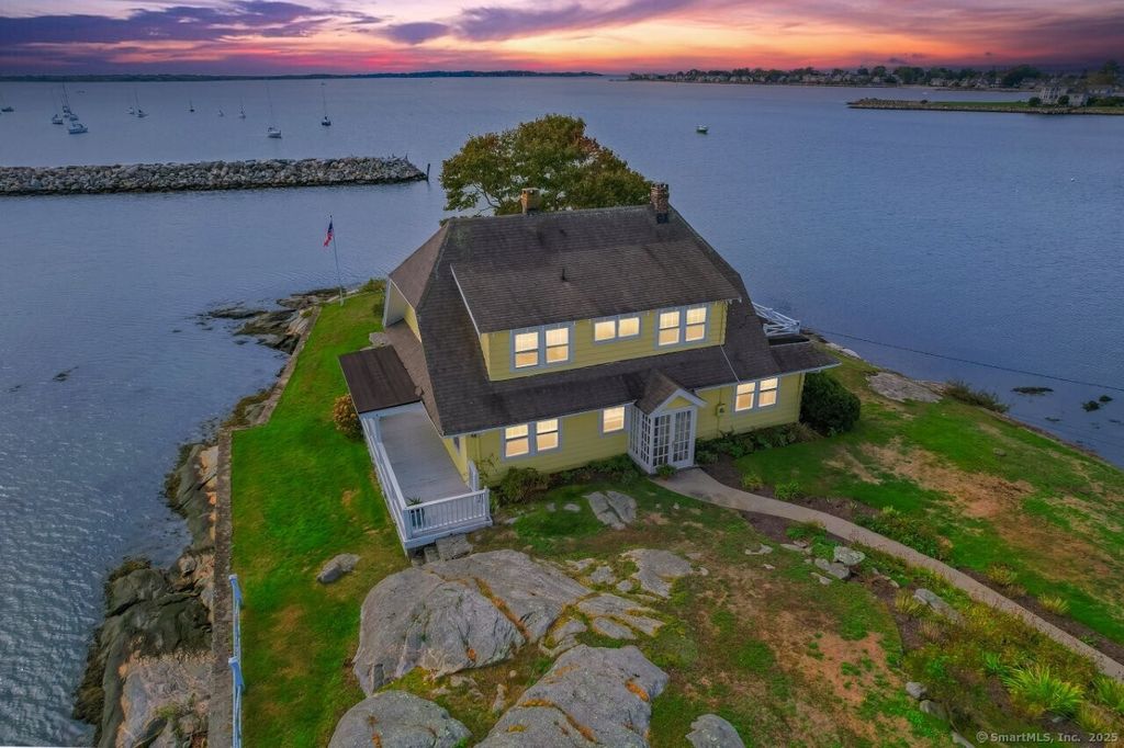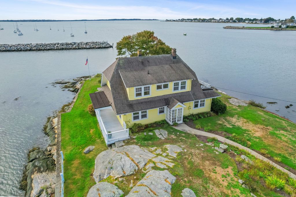 RARE OPPORTUNITY! Perched proudly on its own peninsula and surrounded by water, this 1920 Dutch Colonial Revival home offers a unique blend of timeless architecture, historic charm, and breathtaking natural beauty. With its signature gambrel roof, gabled dormers, and classic symmetrical design, the home enjoys sweeping views over Fishers Island Sound from nearly every room. Lovingly maintained by the same family since 1984, this residence reflects care, pride, and authenticity throughout. Just a stone's throw from Esker Point Beach and Noank Village, and only minutes to Groton Long Point, Downtown Mystic, Stonington, and more. This location combines coastal tranquility with convenient access to shopping, dining, and marinas. With ample square footage, 2 car garage, and an unparalleled waterfront setting, the property offers endless potential to create your forever home. Ideally positioned between New York City and Boston, this remarkable home embodies the best of New England's coastal living; a true sanctuary where history, character, and scenery come together in one extraordinary place.