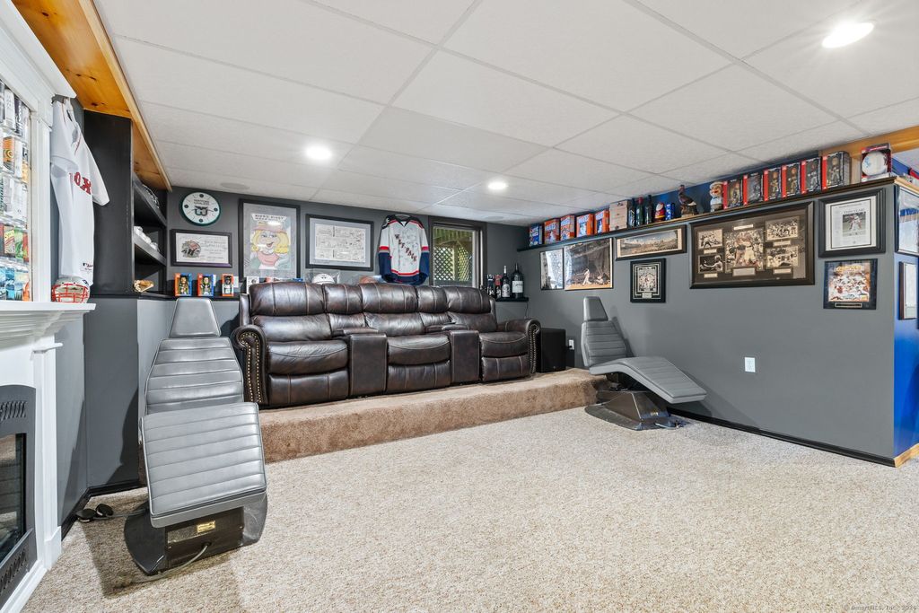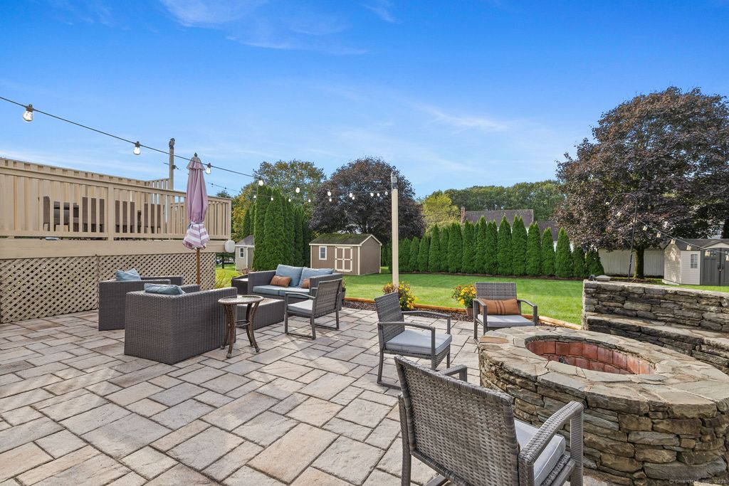 HIGHEST AND BEST DUE BY MONDAY 8:00 PM Welcome to 49 Pondview Lane, nestled in one of Bristol's most sought-after neighborhoods where homes are rarely available & pride of ownership shines. This stunning contemporary offers 3 bedrooms, 2.5 baths, over 2,400 square feet of thoughtfully designed living space. The main level boasts a remodeled kitchen with quartz countertops, tile backsplash & abundant cabinet space, flowing into a dining room with hardwood floors, a cozy fireplace & sliders that open to an expansive composite deck. Just off the dining room, the sunken living room features rich wood floors, perfect for both everyday relaxation & entertaining. An office or study & a convenient half bath complete the first floor. Upstairs, three generous bedrooms with hardwood floors & double closets provide ample space, including a primary suite with two double closets, a luxurious en-suite bath with jacuzzi tub & a separate shower. A second updated full bath & laundry add ease & functionality. The lower level is a true retreat with a partially finished space featuring theater seating, a bar & a wine cellar, ideal for movie nights or hosting friends, plus abundant storage. Recent updates include full replacement windows, new skylights, a newer roof & meticulous upgrades throughout. Outside, a manicured lawn, composite deck, paver patio with built-in firepit, & oversized spotless garage add to the appeal.