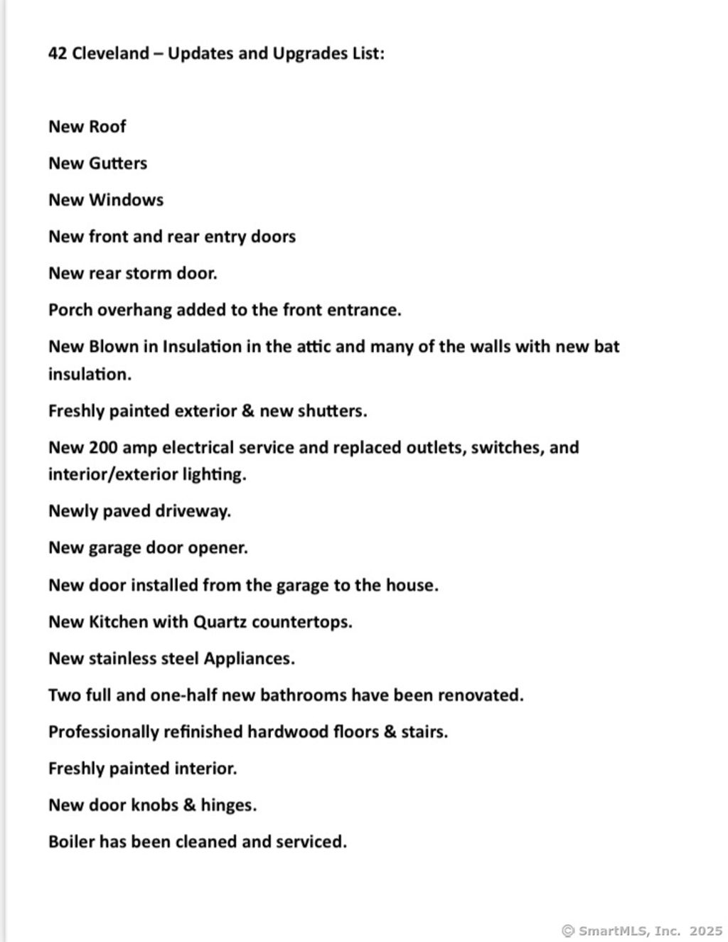 What a lovely neighborhood and a beautifully updated home! Walk through the front door and fall in love with the updates. New kitchen with white quiet close cabinets, quartz counters tops and stainless steel appliances. A wall has been removed between the kitchen and dining room to provide an updated open floorplan kitchen. The large living room has a cozy fireplace and a half bath rounds off the first floor. The primary bedroom has a brand new full bathroom with a porcelain tile walk in shower. The 2nd full bathroom has been completely renovated. **New Roof, Gutters, Windows and Exterior Doors. Newly paved driveway. New 200 amp electrical service, new outlets, switches and light fixtures inside and out. All of the hardwood floors have been professionally refinished throughout the house. The entire house, inside and out, has been professionally painted.** A list of improvements can be found in the listing attachments. Conveniently located minutes from shopping, restaurant, entertainment and I-84. Highest Best is set for Monday 9/29/25 5:00pm.