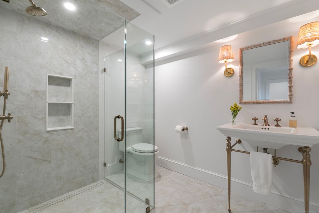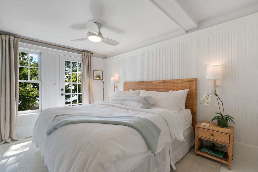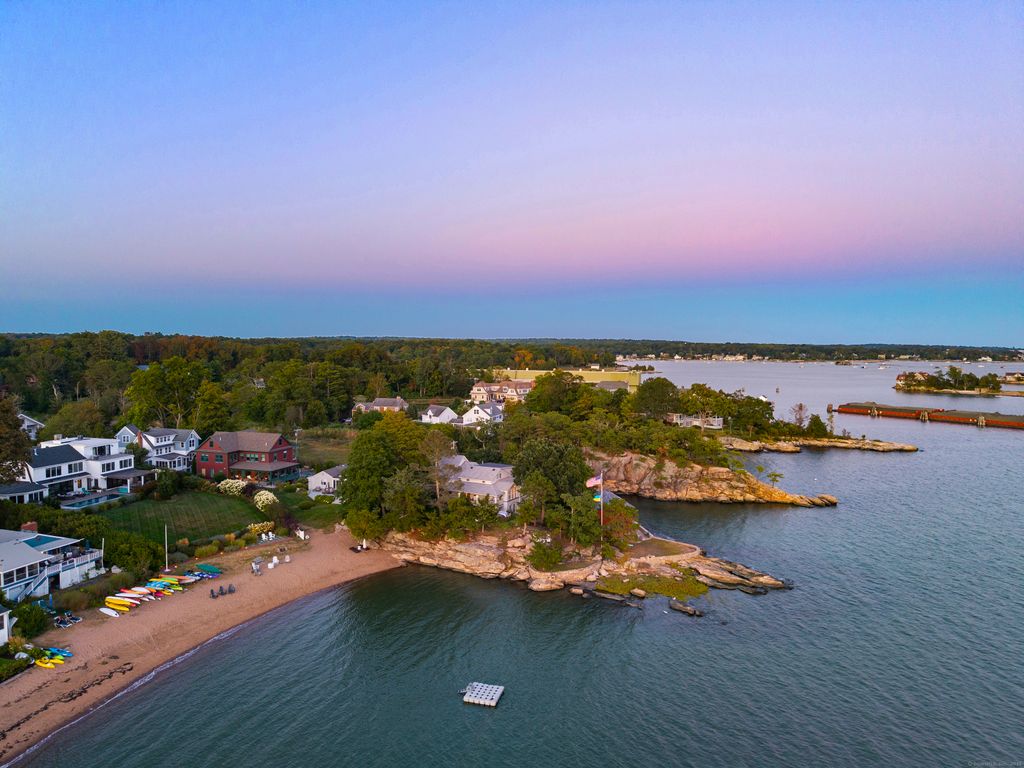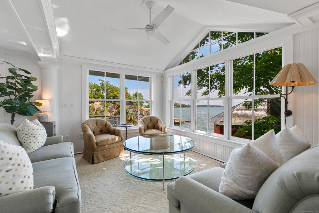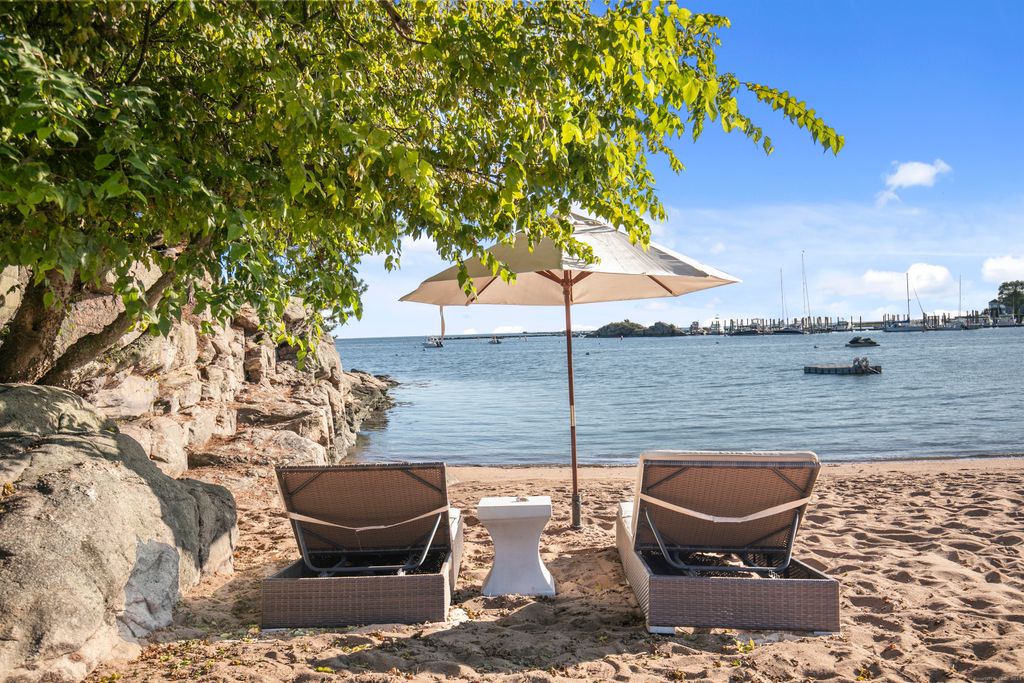 Welcome to Point House, a distinguished c. 1850 waterfront estate perfectly positioned on Long Island Sound w/ the rare privilege of dual membership in both Thimble Farms & Pine Orchard Beach Assoc's. Spend your summer days on your private beach that blends seamlessly w/ the assocation stretch of golden sand. This recently expanded & updated coastal sanctuary graciously blends historic charm w/ every modern luxury. Entry level welcomes guests w/ complete in-law quarters featuring a comfortable sitting area, full kitchen, bedroom, bath, & bedroom / office-ideal for extended stays or multi-generational living. Ascend to the main level w/ views of the legendary Thimble Islands unfold. The living room, graced by an east-facing deck, overlooks your 1st of 2 private beaches & unique & breathtaking views. The west-facing dining room captures spectacular sunsets while opening to the kitchen & deck-perfect for entertaining against a backdrop of endless water views. Recent renovations added a convenient main-level laundry room & full bath, leading to the crown jewel: a private primary suite featuring a spa-inspired ensuite w/ tiled walk-in shower, soaking tub, & indulgent radiant heated floors. Third level houses 2 add'l bedrooms & a 4th full bath, plus a spectacular new bonus room w/ soaring vaulted ceiling-destined to become your family's activity headquarters & elevator ready. This coveted address is the perfect private retreat & effortless connectivity to both New York and Boston.