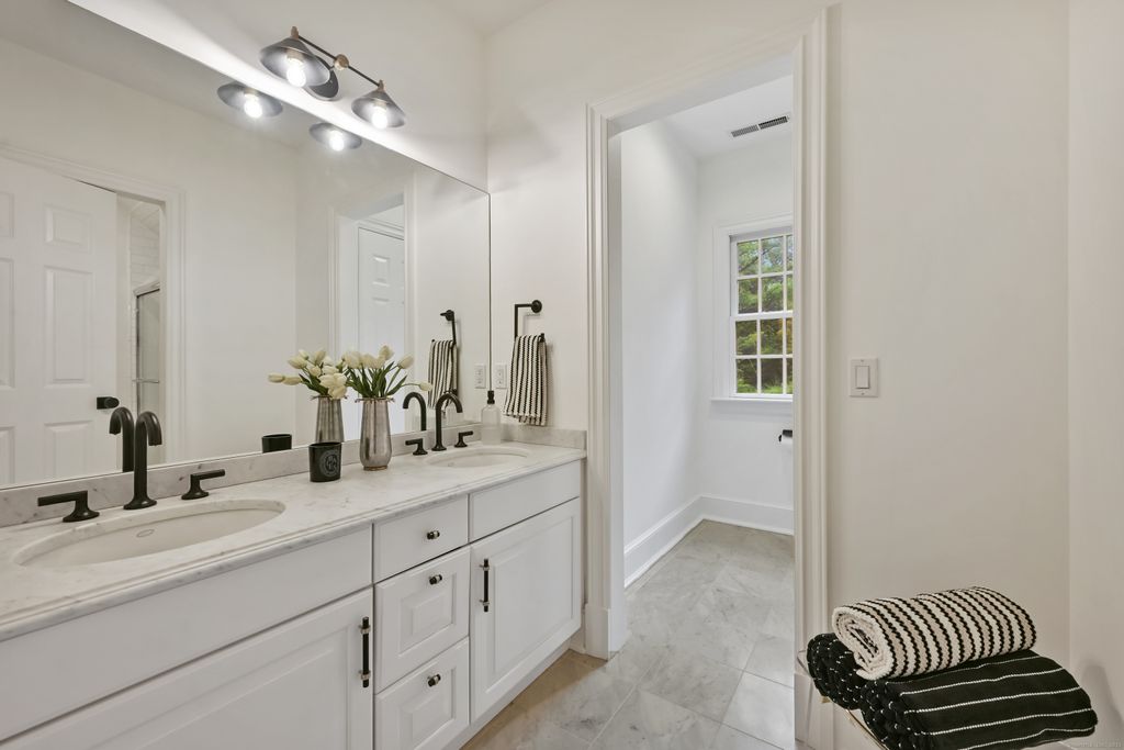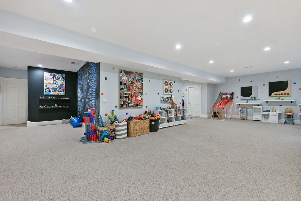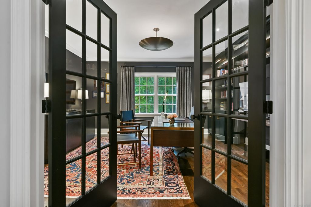Perfectly situated on over two flat, beautifully usable acres, this exceptional 5 bedroom, 4 full/2 half bath home offers nearly 8,000 square feet of living space across four full levels. Located just minutes from top-rated schools, shopping, and the vibrant town center, this property combines unmatched space, convenience, and flexibility. Inside, soaring 9-foot-plus ceilings throughout create an open, airy feel, while large windows flood the home with natural light. The main living areas are generously proportioned, offering both comfort and elegance with seamless flow for everyday living and entertaining. Many recent upgrades include custom built-ins in both the private home office and the primary suite, adding tailored functionality and design. The fully finished, walk-out basement with 8.5 ft ceilings spans approximately 1,400 sf with full bath and features its own private driveway entrance - ideal for guests, extended family, or potential separate living quarters. Upstairs, a spacious walk-up attic houses a stunning 900-square-foot artist studio, offering limitless potential as a creative workspace, private office, or playroom! With five well-appointed bedrooms all on the second floor and multiple living spaces across four expansive floors, this home provides room to grow, create, and live comfortably. Rarely does a property of this scale, condition, and location come to market. If you're looking for space, privacy, and proximity to everything, you've found it!