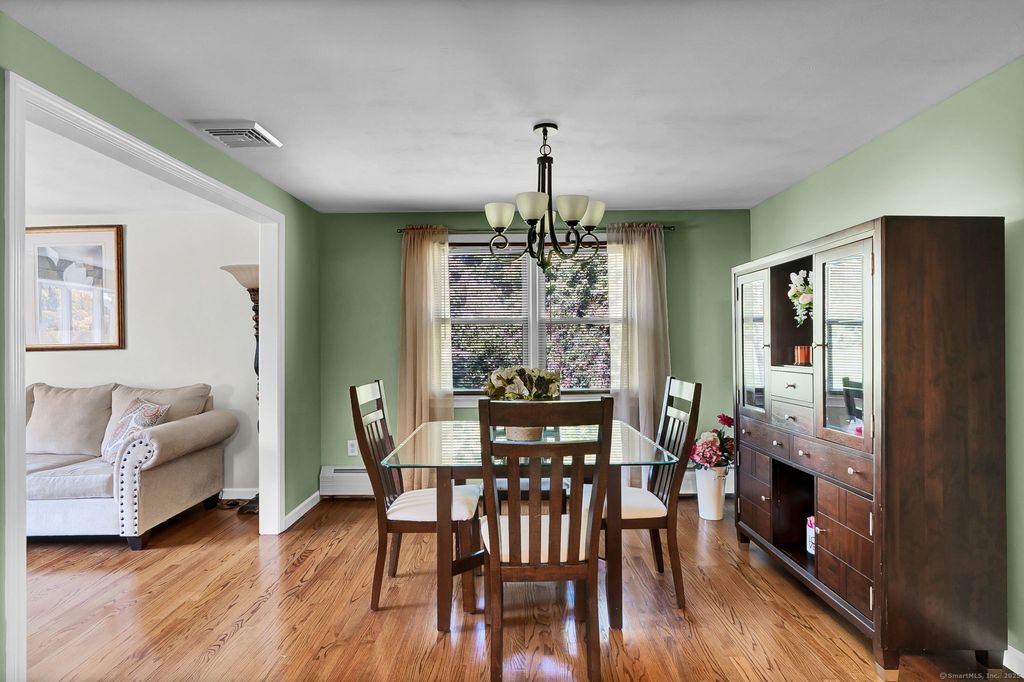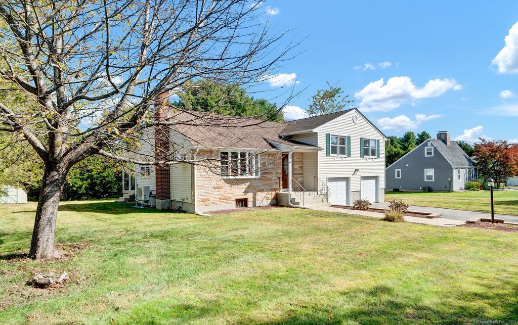 Your Rocky Hill Home Awaits You!! Well maintained move-in ready Split-Level. Many upgrades throughout this home including an updated kitchen with cherry soft close cabinets, granite counters, tiled backsplash, stainless appliances, and engineered tile flooring. The kitchen is open to the dining area that provides a great space for entertaining. Beautiful oak hardwood floors run throughout, along with a large living room and bay window that provides ample natural light. The upper level includes 3 spacious bedrooms with large closets and a walk-up attic with plenty of storage space. The lower-level family room has a new carpet and oversized closet for extra storage. This space is perfect for a gym, office, playroom or for the family to gather. Convenient laundry location is on the first level bathroom. Enjoy the covered patio that leads to a large private lot and oversized shed. Many other upgrades include a newer Roof, Paved Driveway, Stone Wall, Front Walkway, Oil Tank and a new Central Air / Heat Pump system. Excellent location and short distance to town parks, numerous restaurants, local farms, and grocery stores.