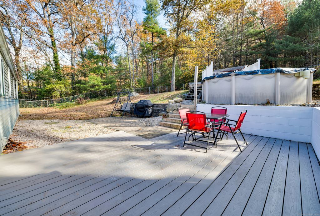 Tucked away on a peaceful 4+ acre lot that backs up to Campbell's Peaceful Valley Conservation Area with scenic walking trails, this charming home offers a great mix of comfort and convenience. Inside, you'll find a spacious layout featuring a bright living room with large windows that bring in plenty of natural light, an open kitchen with stainless steel appliances, and a generous center island perfect for casual dining or entertaining. The dining area opens through sliding doors to a large back deck overlooking the yard and above-ground pool-ideal for relaxing or summer get-togethers. The fenced backyard includes a heated shed with electricity, perfect for a hobby space or year-round workshop. A new roof and siding (approx. 2016) provide peace of mind, and there's also a hookup for a portable generator for added practicality. Enjoy easy access to nearby amenities while being surrounded by nature-perfect for anyone seeking both privacy and connection to the outdoors.