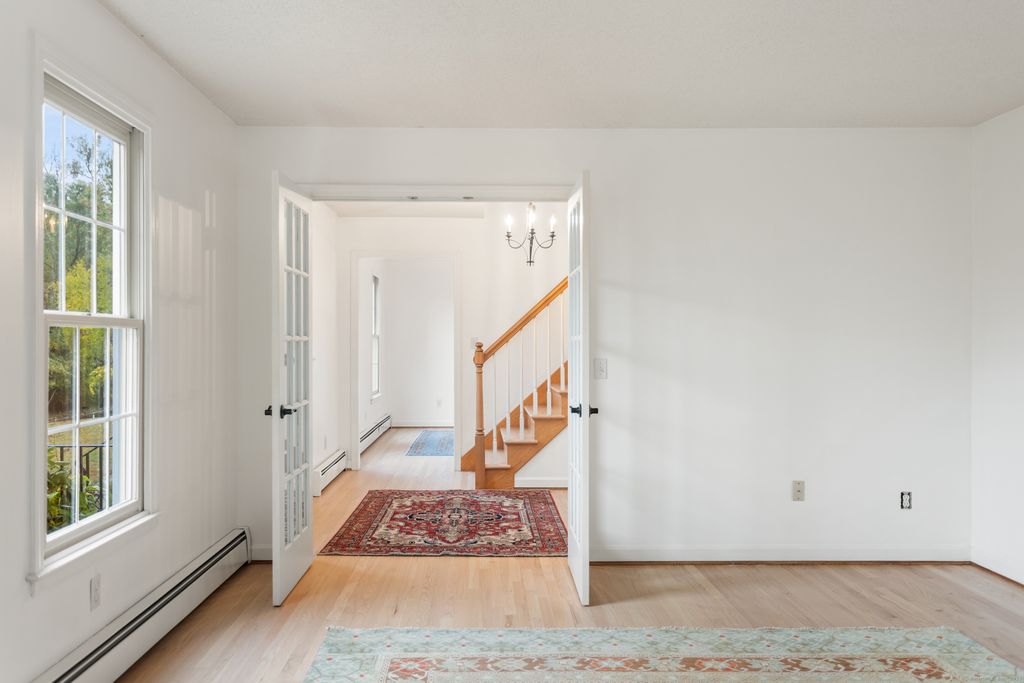 Set on a prominent knoll with southern exposure and freshly landscaped grounds, 36 Surrey Lane is a welcoming, light-filled home. Freshly painted walls in natural tones and beautifully refinished wood floors create a calm and inviting backdrop throughout the first floor. The foyer opens to a generously sized living room on the right, accented with French doors, and a formal dining room on the left, comfortably seating ten-a refined setting for entertaining. The eat-in kitchen, featuring granite countertops, stainless steel appliances, and a breakfast bar, flows seamlessly into the family room, centered around a cozy wood burning fireplace. Sliding doors open to a spacious deck and level backyard framed by a lightly wooded backdrop, ideal for outdoor summer gatherings. Thoughtful touches, including an oversized laundry with built-ins and a powder room off the attached two-car garage, make everyday living easier. Upstairs, three well-proportioned bedrooms and a full bath surround the primary suite, which includes an additional full bath, dressing area, walk-in closet, and an adjoining sunlit room with two skylights-perfect for a nursery, home office, or sitting area. The lower level offers over 1,000 square feet of finished space, including a kitchen, living area, bedroom, and a tastefully appointed bathroom with a glass-enclosed shower, providing flexible space for an in-law suite or au pair. 36 Surrey Lane features generous proportions and a layout for both