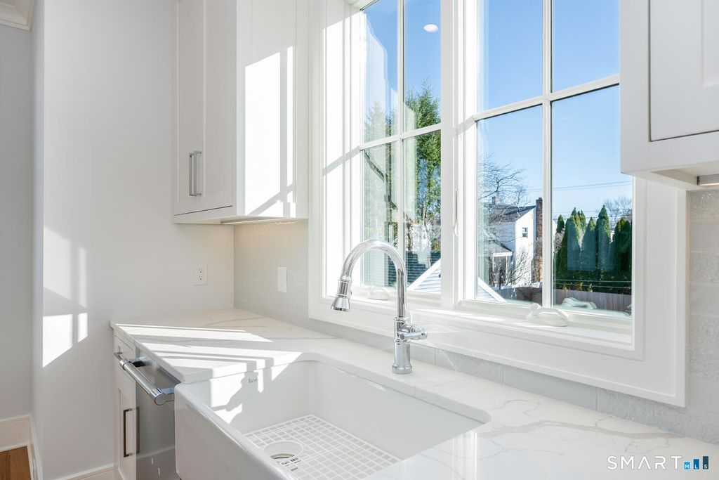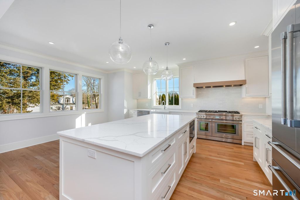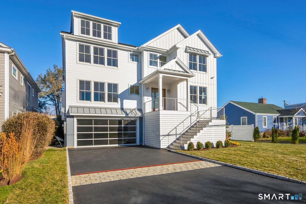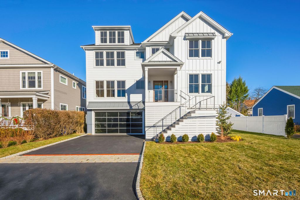 The house that dreams are made of-nestled in a walkable community near beach, quaint town center and train. Brand-new construction set for completion this year offers a seamless blend of understated elegance & coastal vibe. Fabulous 1st floor open floor plan features 9' ceilings and all generous size rooms: an inviting foyer, private mudroom, gourmet kitchen with 8' Quartz Island for entertaining. Top of the line Thermador appliances: 48" Gas 6 burner dual fuel convection range, 7' French door refrigerator, French Allia farmsink, dining area. Modern day "Keeping Room" adjoins the kitchen for cozy gatherings w/ Sliders to a covered deck for BBQ, generous Family room w/gas fireplace, formal living room, formal dining room w/panel molding. A walk through butlers pantry with wet bar and wine cooler, huge pantry and powder room complete the first floor. Custom shaker style cabinetry, exquisite moldings including ship lap and panel moldings throughout. Upstairs you'll find 4 ensuite bedrooms including a stunning Primary suite, impresses with vaulted ceiling and dreamy 11' x 12' walk-in closet. Spa-like luxurious primary bath has radiant heat floors, Rohl fixtures, pedestal soaking tub, frameless glass shower. 3rd floor has a 5th bedroom, full bathroom and extra playroom. Every closet is thoughtfully outfitted. Garage level has a 2nd mudroom, parking for 3 cars with Loggia area and ample storage. Experience your private oasis-designed for comfort, entertaining and luxury.