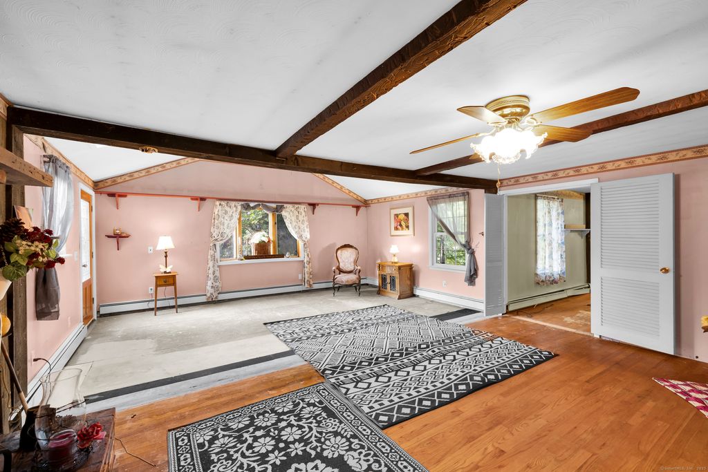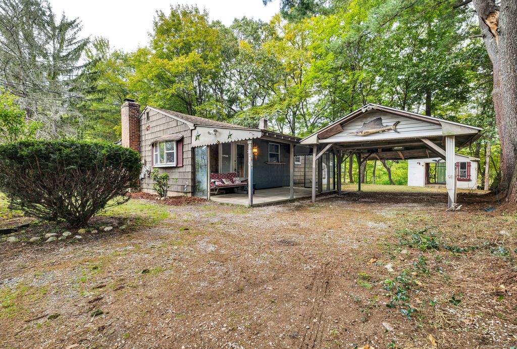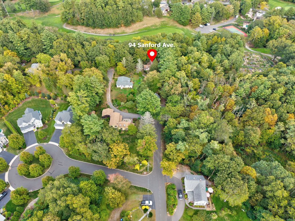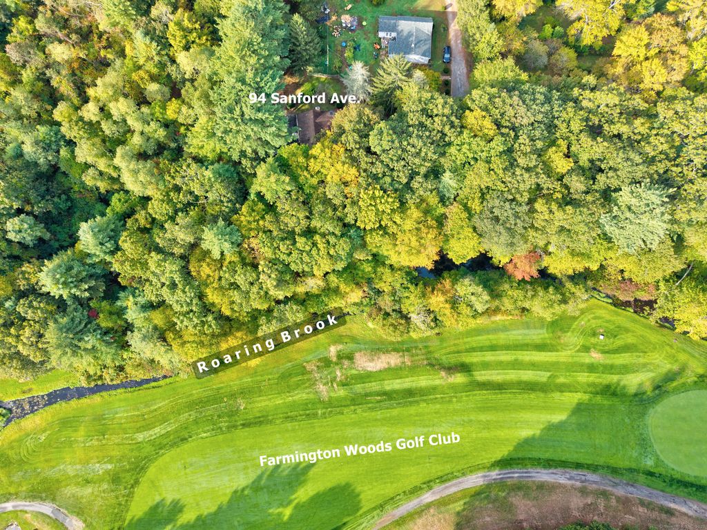 Welcome to 94 Sanford Ave., Unionville, Farmington, Connecticut Tucked just off South Main Street (Rte 177) at the end of a private cul-de-sac, this two-bedroom, one-bath home sits elevated on a hilltop lot with a brook along the rear property line and views of Westwoods Golf Course beyond. Inside, the layout opens to a kitchen and dining area adjacent to a spacious living room and a separate family room. Natural light fills the home through two bay windows-one in the kitchen and one in the family room-along with additional windows and skylights. The flexible floor plan is comfortable as is and offers an opportunity to update or make it your own. Surrounded by trees and set back for privacy, the lot provides a peaceful backdrop. Buyers may explore options for future changes, such as an addition, garage, or outbuilding, subject to town approval. The brook defines the lower boundary of the parcel, with the golf course situated just beyond, enhancing the sense of tranquility. Schedule your showing today and discover the possibilities at 94 Sanford Avenue.