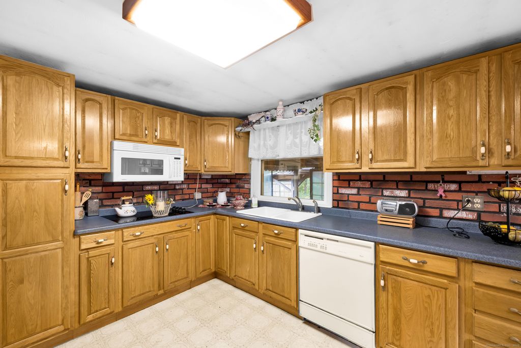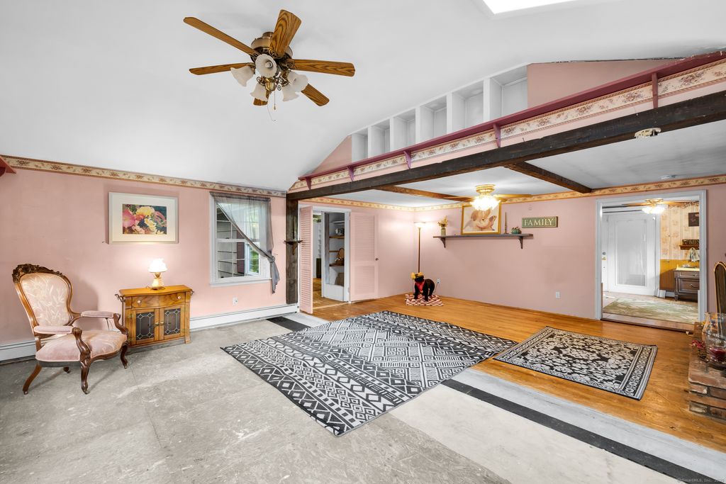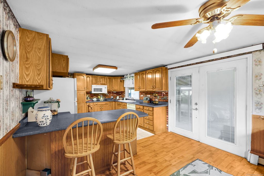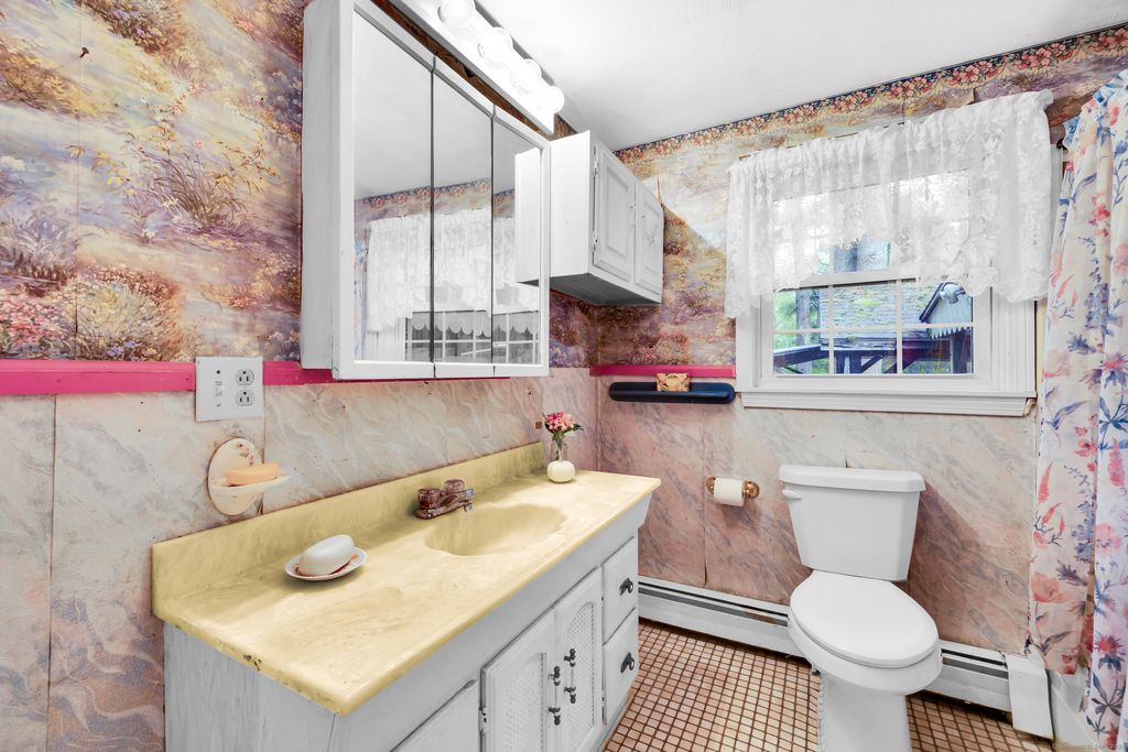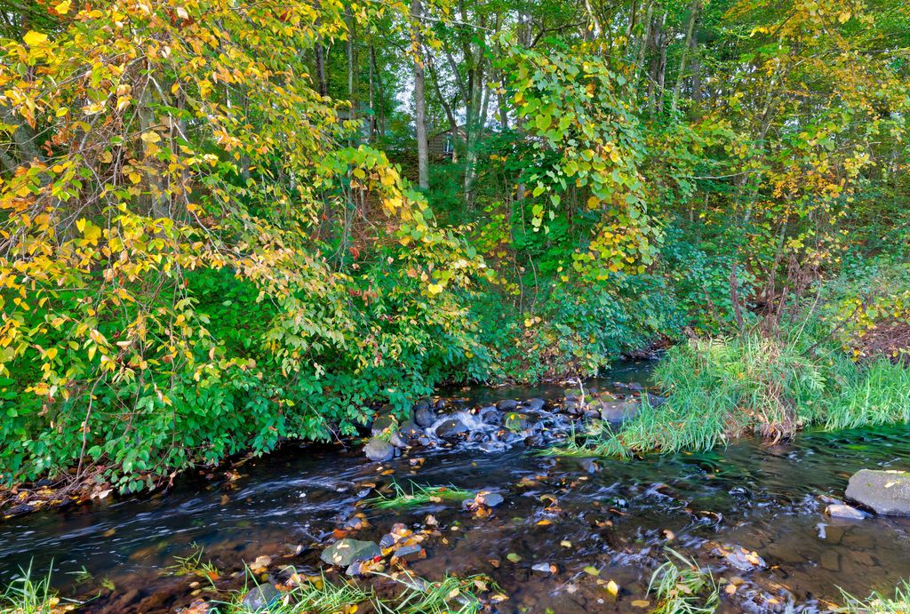 Welcome to 94 Sanford Ave., Unionville, Farmington, Connecticut Tucked just off South Main Street (Rte 177) at the end of a private cul-de-sac, this two-bedroom, one-bath home sits elevated on a hilltop lot with a brook along the rear property line and views of Westwoods Golf Course beyond. Inside, the layout opens to a kitchen and dining area adjacent to a spacious living room and a separate family room. Natural light fills the home through two bay windows-one in the kitchen and one in the family room-along with additional windows and skylights. The flexible floor plan is comfortable as is and offers an opportunity to update or make it your own. Surrounded by trees and set back for privacy, the lot provides a peaceful backdrop. Buyers may explore options for future changes, such as an addition, garage, or outbuilding, subject to town approval. The brook defines the lower boundary of the parcel, with the golf course situated just beyond, enhancing the sense of tranquility. Schedule your showing today and discover the possibilities at 94 Sanford Avenue.