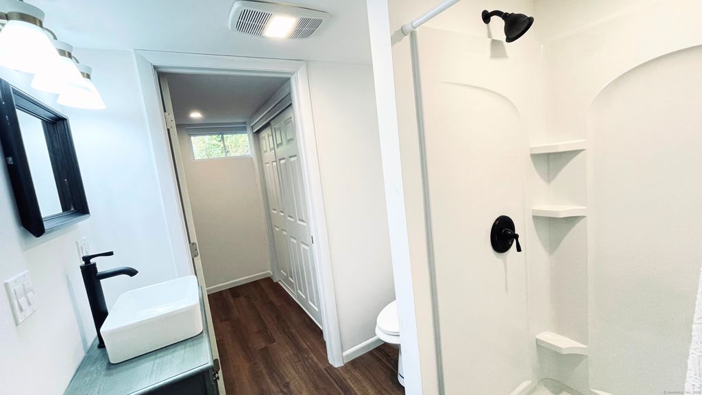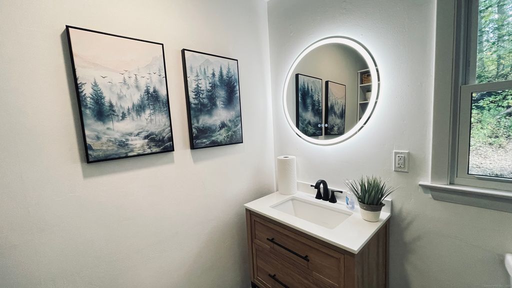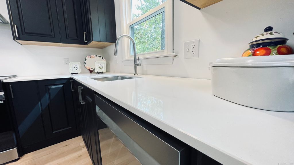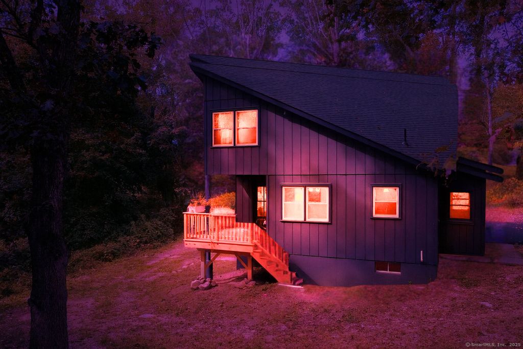 Tucked at the end of a cul-de-sac, this completely remodeled contemporary home is ready to win hearts. With over 1,800 sq ft across three finished levels, it balances style, space, and comfort. The gourmet kitchen, with its butcher block island and high-end appliances, invites everything from late-night snacks to holiday feasts. An open living area leads to a covered deck overlooking a private acre-perfect for morning coffee or sunset reflections. The nearly 250 sq ft primary bedroom boasts soaring vaulted ceilings. While the second level shines with hardwood floors, the main level flows with durable luxury vinyl plank. Downstairs, a finished 612 sq ft basement retreat offers a bedroom, full bath, and cozy den/family room with walk-out separate entry which could work well for that accessory dwelling space. Efficient mini splits keep the top two levels comfortable. All this, just minutes from Cedar Ridge Golf Course and the beaches, dining, and shops of downtown Niantic. Come see where modern convenience meets a touch of heart.