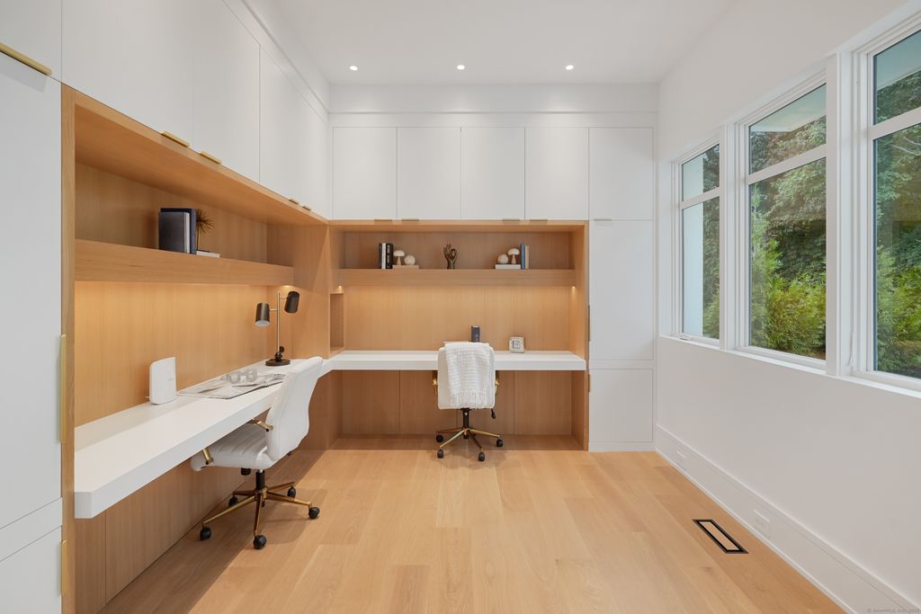 Experience exceptional craftsmanship in this new construction 6-bedroom, 6.2-bath home on a desirable Riverside cul-de-sac. Spanning over 6,500 sq. ft. across four levels, this thoughtfully designed residence blends luxury, comfort, and convenience. The main level features 10-foot ceilings, white oak floors, and a dramatic double-height family room with a gas fireplace. The show-stopping eat-in kitchen anchors the home, complemented by a formal dining room with wet bar, living room with fireplace, and private office. Upstairs, the primary suite impresses with vaulted ceilings, dual walk-in closets, a fireplace and a spa-like bath. Four additional bedrooms each with a walk-in closet-and three bathrooms complete the upper floors. The finished lower level offers a family room with fireplace, wet bar, gym, and en suite bedroom. Outside, enjoy a private oasis with a fire pit, motorized pergola, and room for a pool. Only minutes from schools, train, parks, and Old Greenwich village.