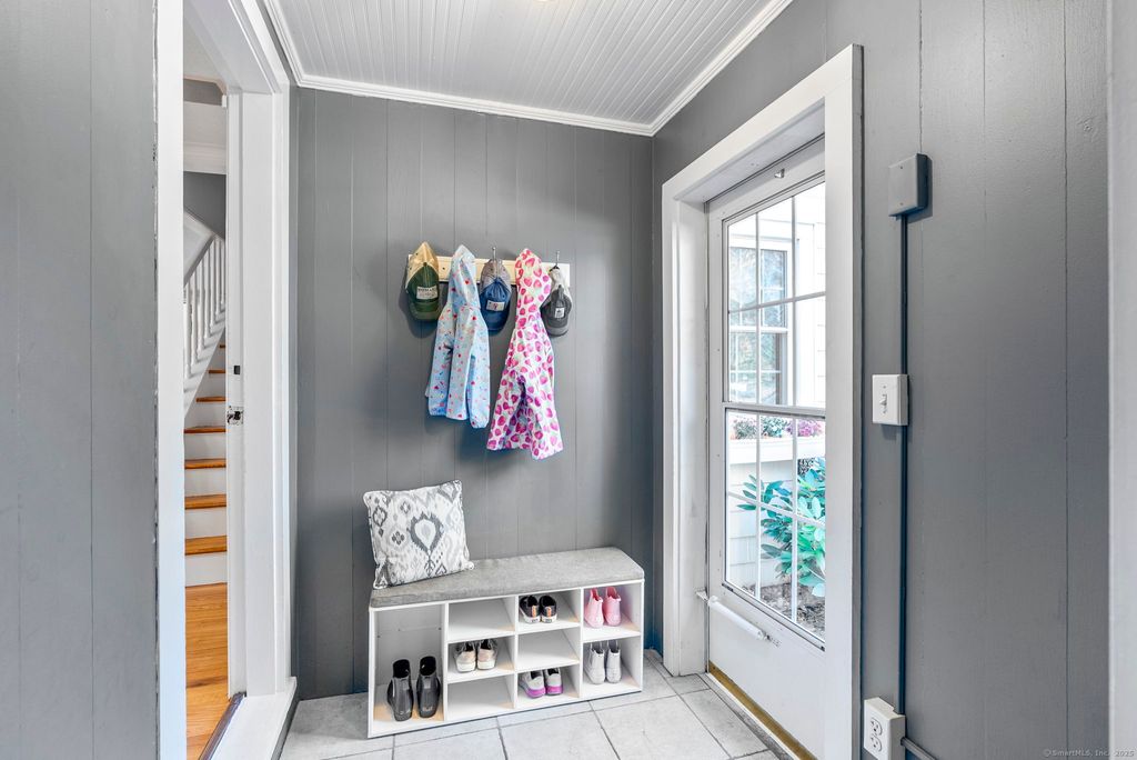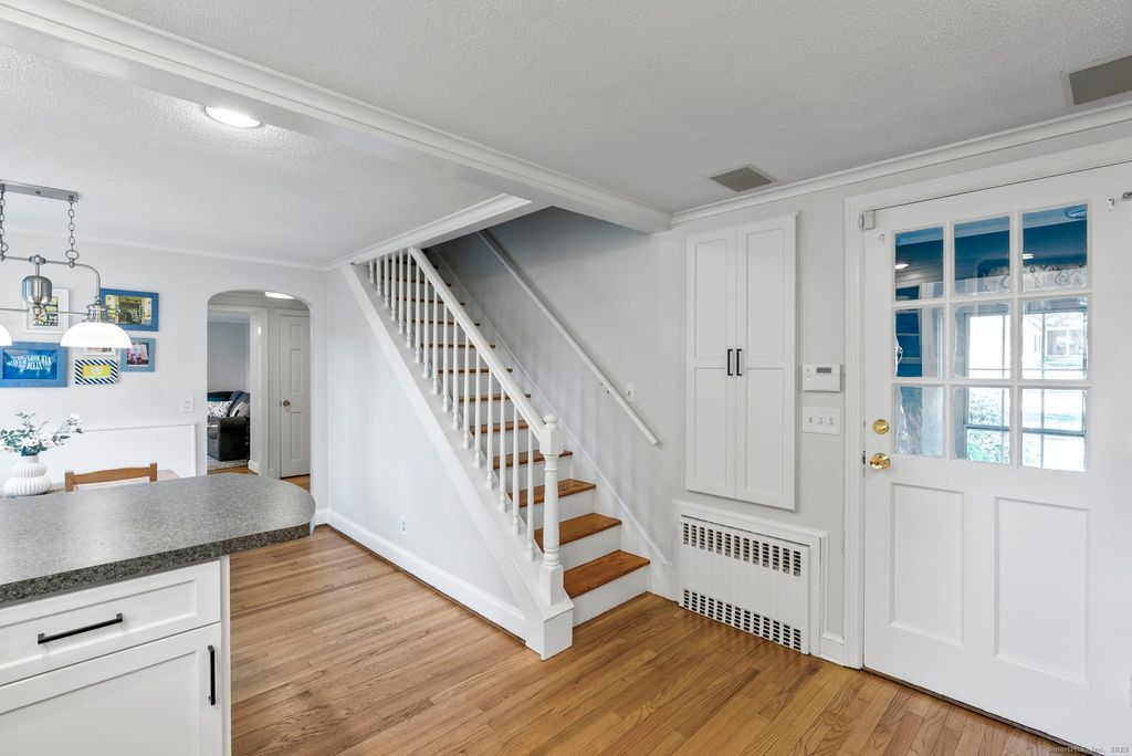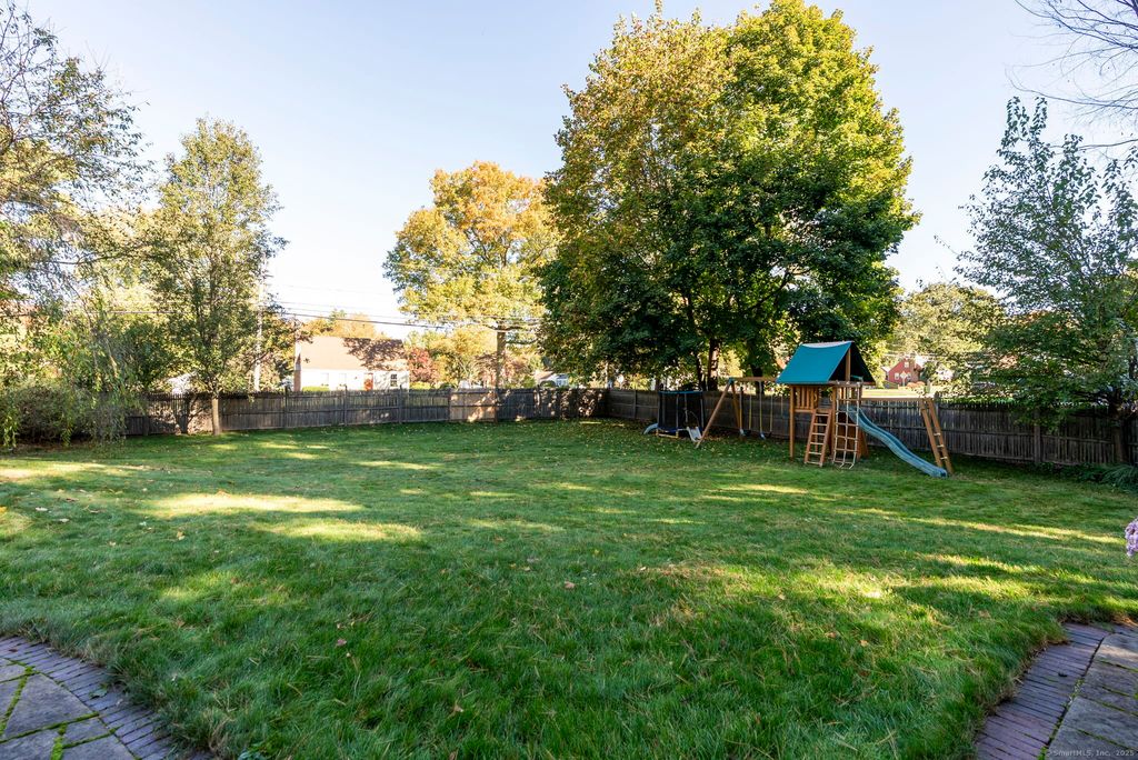 It's the ONE you've often admired! The ONE with extraordinary curb appeal, quintessential Glastonbury charm, so many upgrades, and a magnificent fenced-in, level yard. All of this in a neighborhood that couldn't be cuter and a location central to EVERYTHING. Inside is a dream: 8 rooms, including a remodeled eat-in kitchen, white and bright with built-in banquette, breakfast bar and lovely cabinets refaced in 2024; a living room that flows right into the dining room to create a multi-faceted space for family gatherings and entertaining ; and a family room- or, if you prefer, a home office- with sliders overlooking patio and PASTORAL, private backyard. There is also a fabulous MUDROOM for ease of storage, and a full bath. Upstairs are three spacious bedrooms, and a second full bath. And to top it off, the finished lower level, with its 500 feet of additional living space, is ideal for exercise, media or playroom. Outside is a paver patio installed in 2016, a bluestone front walkway, an expansive backyard oasis, fenced- in for privacy and kid's play, and a shed/ playhouse. The house is vinyl sided, has Harvey windows, and a 40-year roof, all installed in 2007. Other amenities include a one-bay attached garage, hardwood flooring on the entire first floor and second floor hallway, fireplace, furnace replaced 2014, oil tank replaced 2005. Public water!