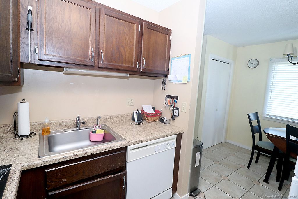 First floor, end unit in Redstone Commons with 1 bed, 1 full bath, 736 sq. ft. Home features a bright living room with a slider and wood burning fireplace, galley kitchen and dining area with tile flooring, laundry in unit, and a large bedroom with double closet and slider out to back patio. Newer wall ac unit, lots of closet space. Conveniently located to shopping center, restaurants, Lake Compounce, and ESPN.