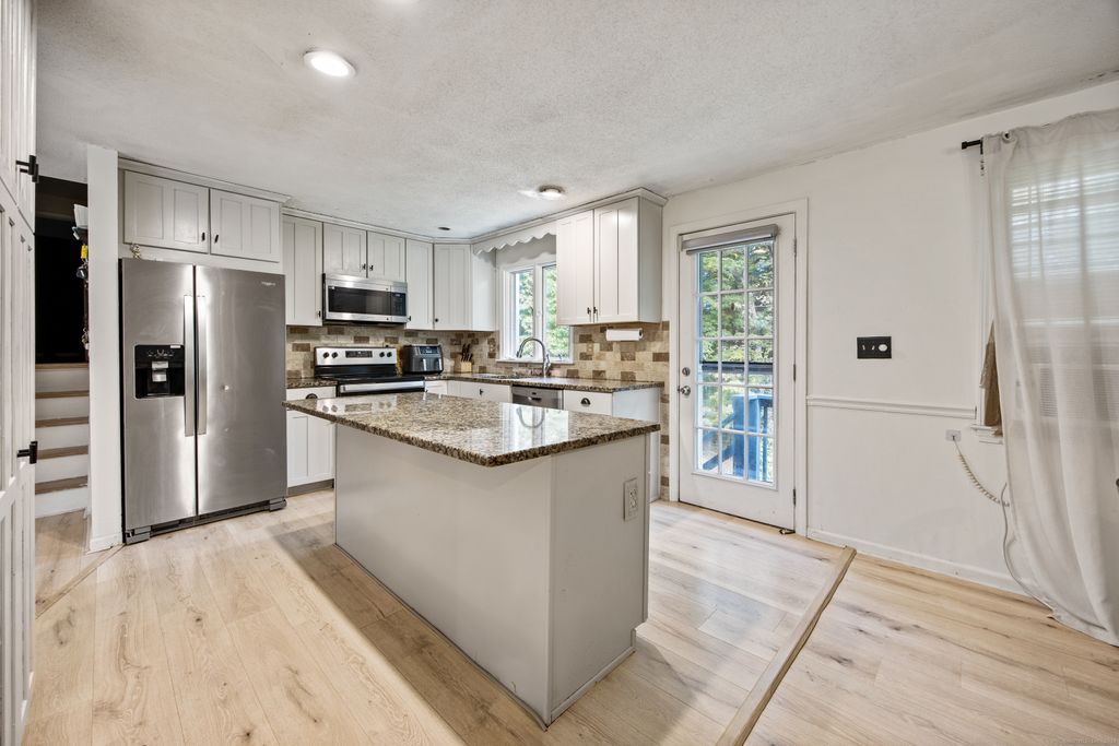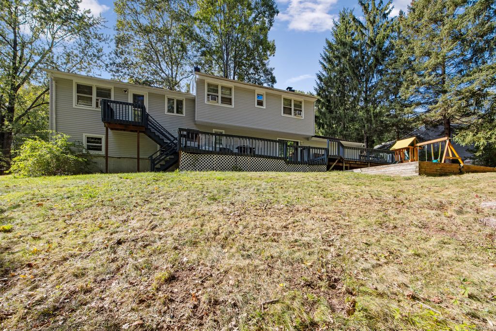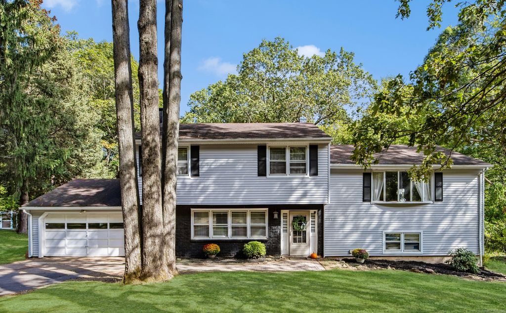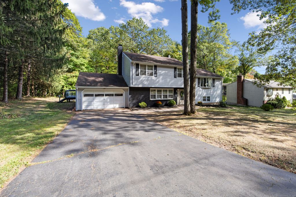 Located in the sought-after Mount Carmel section of Hamden, this split-level home offers 4 bedrooms, 1.5 baths, and an attached garage. The main level features a spacious family room with sliding doors to the deck and private wooded yard, along with a half bath and laundry area. The upper level offers an open living and dining area, plus a kitchen highlighted by a full wall of floor-to-ceiling pantry cabinetry. This level also includes four comfortable bedrooms and a thoughtfully renovated full bath (2023). Other notable updates: vinyl siding (2023), new flooring throughout (2023), new electric panel (2024). Set on a quiet dead-end street, this property provides both privacy and convenience, just minutes from Quinnipiac University, shopping, restaurants, and major highways.