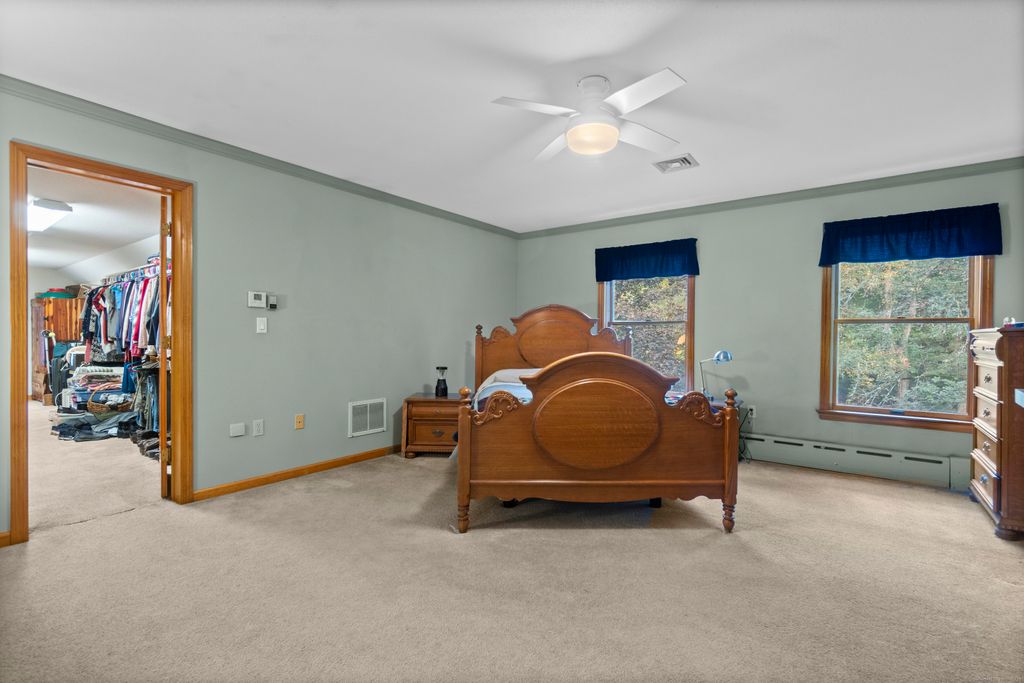 This 2,676 sq. ft. colonial offers space, versatility, and privacy on over an acre of beautifully landscaped property. The home features four generous bedrooms and two and a half baths, plus an additional accessible full bath with a shower, toilet, and sink conveniently located in the front office; ideal for in-home care or extended guest accommodations. The first floor showcases hardwood flooring throughout, while the second floor includes hardwood hallways and comfortable carpeting in each bedroom. The spacious primary suite includes a walk-in closet with exceptional storage that feels endless. The well-designed kitchen features a walk-in pantry and opens to a bright, inviting layout that connects easily to the outdoor deck area, perfect for relaxing or entertaining. Modern conveniences include central air conditioning, a central vacuum system, and a full-house automatic generator. A second-floor laundry room adds functionality, and the cedar deck is complemented by a paved front walkway and brick path leading to the backyard. A detached two-car building offers versatility with an upper-level game room that's fully heated and air-conditioned, while the lower level includes two oversized garage bays with workspace and storage; ideal for a workshop or car enthusiast. Set among serene surroundings with mature trees and open yard space, this property provides a sense of peace and privacy while maintaining accessibility to nearby amenities. Well/Septic