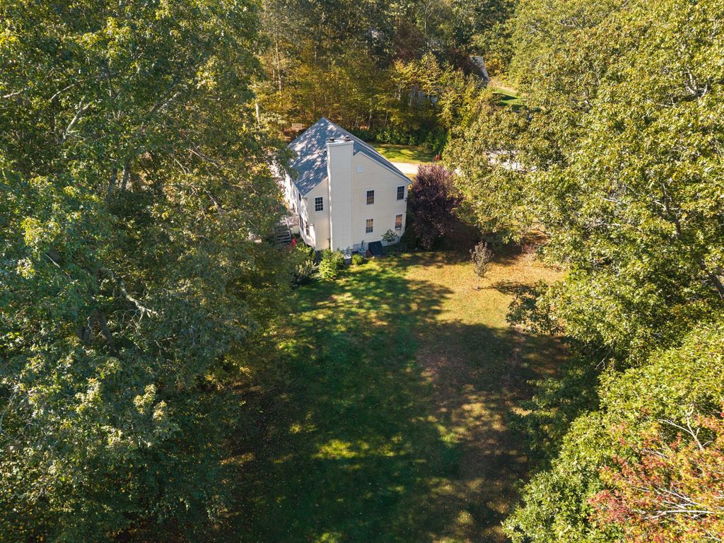 Beautiful New England Colonial set on a full acre at the end of a cul-de-sac! This 4-bedroom, 2.5-bath home offers 2,639 sf of inviting living space, complete with an attached 2-car garage. Upon entry, a striking staircase leads to the upper level. To the left is the living room with French doors opening to the family room, where elegant, bowed windows and a white brick fireplace create a warm, welcoming atmosphere. The space flows into a spacious kitchen with granite counters, double sink, stainless steel appliances, and ample cabinetry. Located at the back of the home, the kitchen offers deck and patio access. Adjacent to the kitchen is the formal dining room that connects back to the entry, creating a comfortable, easy flow. The first floor also includes a half bath. The upstairs primary bedroom offers a private bath with double sinks, soaking tub, and shower stall. Three additional bedrooms and a full bath complete the upper level. The fully finished, heated basement adds additional flexible living space with interior access. Enjoy the outdoors with a spacious stone patio and firepit area, perfect for relaxing or entertaining. The house improvements include a new roof, patio, crown molding, backsplash, finished basement, new furnace, and a generator connection. With its classic colonial style and cul-de-sac location, this home captures timeless New England charm.