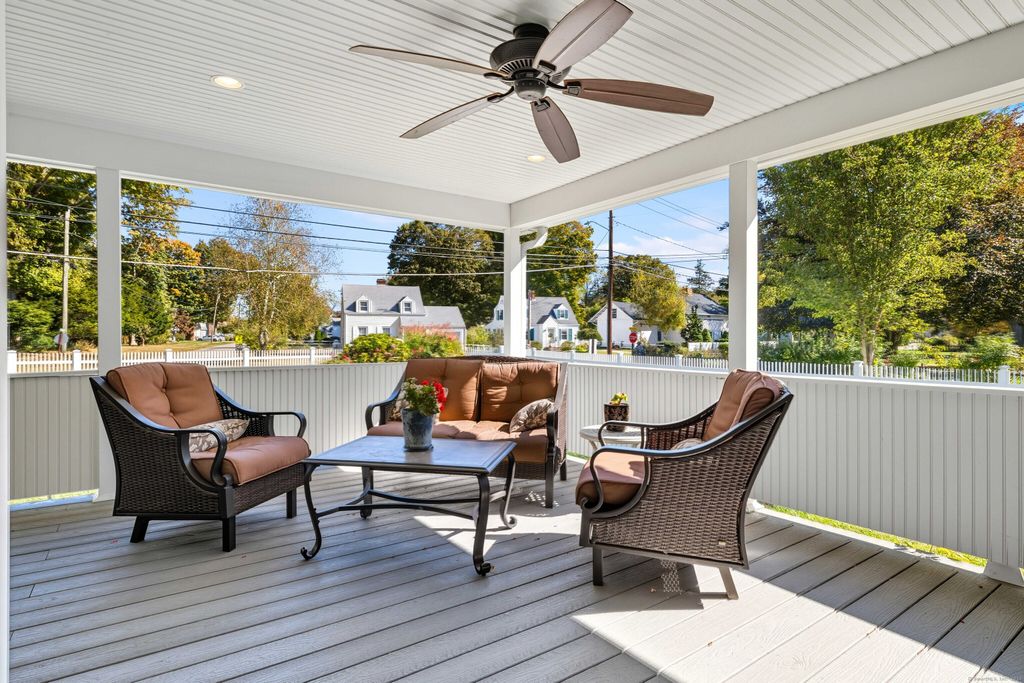 Welcome to this charming home which features an open floor plan and hardwood floors on the main level with an abundance of natural light. The kitchen features stainless steel appliances, granite countertops, island and a seamless flow to the spacious living area which includes living room and family room with a double sided fireplace, a dining room with french doors to the deck perfect for entertaining, a cozy sunroom with front deck access. The perfect spot for morning coffee or relaxing evenings. a mudroom with private entrance. Upstairs there is a bright and inviting primary bedroom suite with walk-in closet, full bathroom/double sinks, cathedral ceilings along with 2 additional spacious bedrooms, full bathroom and laundry area. Outdoor living shines with a front wrap-around trex deck and deck in the back perfect for summer barbecues, fenced in yard for privacy, detached garage and shed for additional storage. Enjoy being a short walk to Main Street to enjoy restaurants, shopping and shows at The Katharine Hepburn Cultural Arts Center, close to town beaches and easy access to highways, train and shoreline amenities, this home offers a lifestyle of small town charm and coastal convenience.