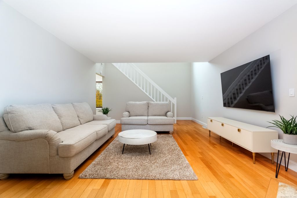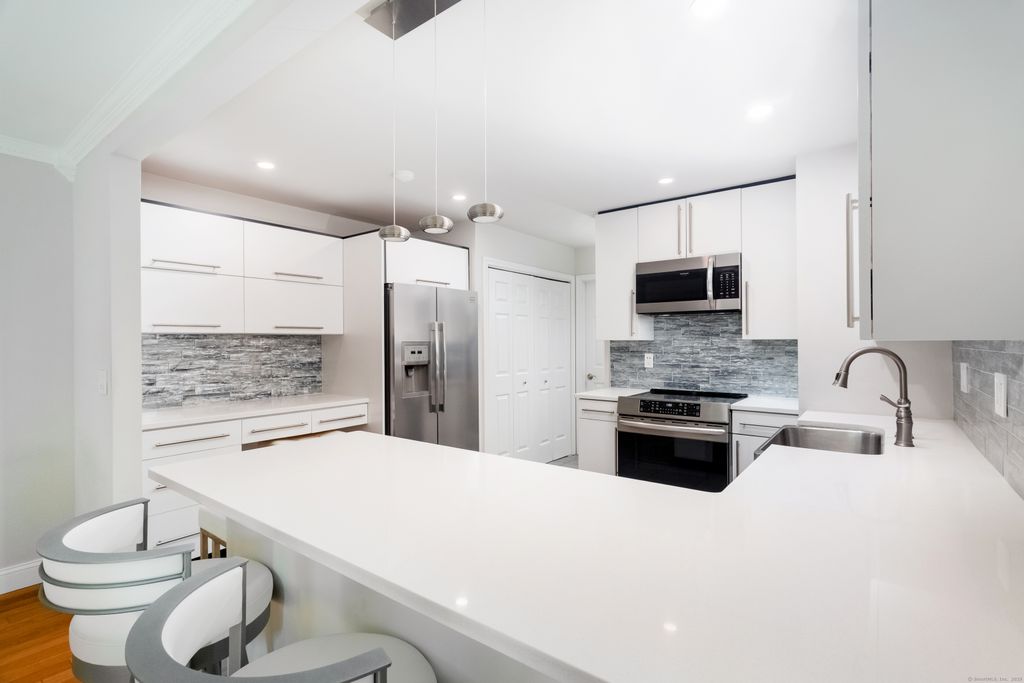 Bright, modern, and move-in ready this updated townhouse in High Meadow pairs sleek upgrades with effortless livability. Enjoy nearly 1,800 SF of space, including 2 bedrooms, 1.5 baths, a 1-car garage, and a finished lower level perfect for work, fitness, or guests. The main level welcomes you with an inviting living room featuring hardwood floors, a wood-burning fireplace, and sliders to a private deck. The remodeled kitchen impresses with tile flooring, refinished cabinets, a new induction range, Corian counters, stainless steel appliances, and a wine cooler. A bright dining area, stylish powder room, and laundry space complete this level. Upstairs, the spacious primary bedroom offers a walk-in closet and a luxurious bath with a spa tub, double-sink vanity with LED mirror, and large shower with a built-in seat. The second bedroom provides an oversized closet and abundant natural light. The finished lower level adds valuable flex space and a workshop area within the garage. Recent upgrades include a premium induction range, tile backsplash, LED mirrors, Delta shower system, LG smart washer/dryer, new A/C condenser (2023), luxury vinyl flooring, energy-efficient windows, and a 220V garage outlet for EV charging. Set on a quiet cul-de-sac close to I-84, Route 7, restaurants, shops, and parks, High Meadow residents also enjoy access to a pool, clubhouse, tennis and pickleball courts, and playground.