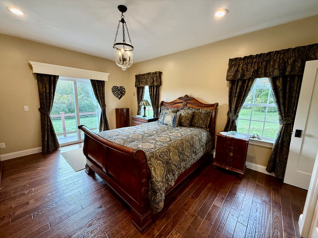 This stunning custom-built 2019 Colonial farmhouse blends modern design with efficient, thoughtful craftsmanship. Meticulously maintained, it features an inviting open-concept layout, hickory wood floors, and a gourmet chef's kitchen with an Electrolux 36" induction range, custom range hood, GE Profile stainless steel appliances, and a pantry. Natural light fills the spacious living and dining areas, highlighted by a cozy gas fireplace. The primary suite includes updated pendant lighting and a spa-like ensuite bathroom. Energy-saving solar panels (2023) and a whole-house water filtration system add comfort and sustainability, while a central vacuum, generator hookup, and efficient systems provide convenience and peace of mind. The finished basement, pre-plumbed for a kitchen and bath, offers excellent expansion potential. Outdoor living features a deck pergola, new landscaping and fencing, and an oversized two-car garage with an attached workshop, loft storage, and wired lighting throughout. Additional unfinished attic space and a large loft above the garage offer even more potential for future finishing, ideal for an extra room, studio, or additional living area. Located on a beautifully landscaped lot with a newly topped driveway, this property offers modern comfort, quality construction, and exceptional flexibility for today's lifestyle.