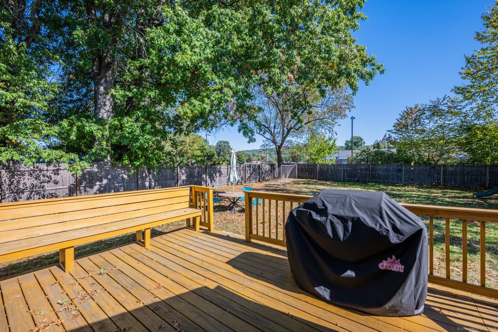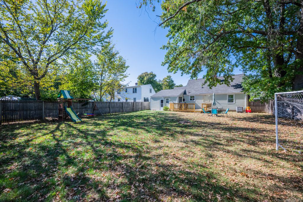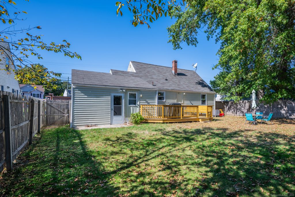 Nice 3 Bedroom Cape Cod close to everything in desirable Plainville. Hardwood floors throughout and eat in kitchen and dedicated dining room. Outside a large deck overlooks a fenced in flat yard great for entertaining guests. Gas furnace and Central Air Conditioning installed within the last few years. Public water and sewer connected. Come make this great home yours today! HIGHEST AND BEST 8:00 Pm 10/13