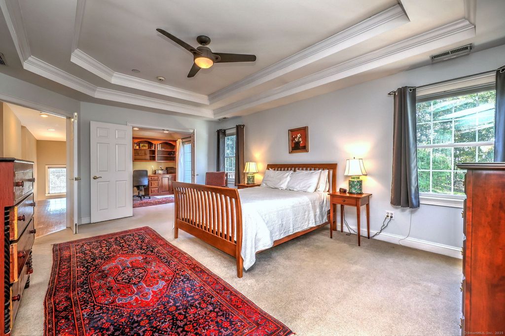 COMING SOON! Step into timeless elegance in this impeccably maintained Colonial, gracely situated in Monroe's prestigious Hammertown Estates. From the monent you enter the soaring 18-foot foyer, gleaming hardwood floors, and intricate crown molding set the stage for refined living and sophisticated design. The versatile first-floor Bedroom/Office features french doors & a full bath-ideal for guests or remote work. The heart of the home is the eat-in Kitchen showcasing rich cherry cabinetry, granite countertops, a spacious island breakfast bar, & premium appliances including a new double oven, exhaust hood, and dishwasher. The open-concept layout flows into a bright family room with 18-foot ceilings, expansive windows, and a cozy gas fireplace. Additional first-floor highlights include a formal Living Room, elegant Dining Room w/built-in china cabinet, & french doors opening to a relaxing Deck w/remote-controlled retractable awning. Upstairs, the luxurious Primary Suite offers a full bath & a private Office w/custom built-ins & Balcony access. 3 additional Bedrooms, a full bath, & 2nd floor Laundry complete the upper level. Outside, enjoy a serene backyard w/stone patio & a fully updated detached Home Office-200 sq ft of flexible space w/ Brazilian cherry floors & energy-efficient HVAC. A whole-house generator, house painted 2024 & updated central air add peace of mind. Enjoy easy commuting, Wolfe Park, Great Hollow Lake, & Monroe's award-winning school