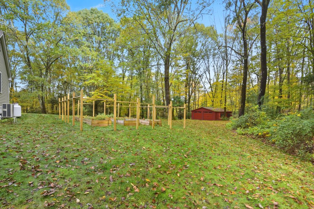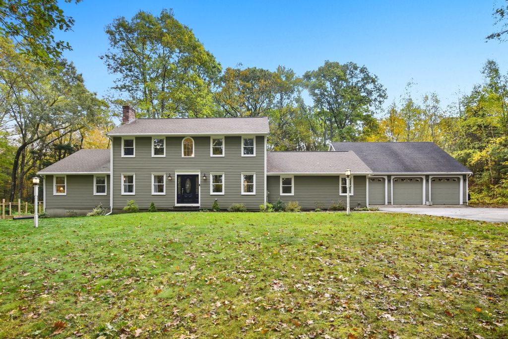 Tucked away on one of Woodstock's most desirable roads, this immaculate 2,952 sq. ft. home is set on 3.5 private acres at the end of a long driveway. The property includes six garage bays-ideal for those needing exceptional storage or vehicle capacity. Freshly painted and in like-new condition, it offers ideal first-floor living with a spacious primary suite and laundry on the main level. The interior features gleaming hardwood floors, elegant crown moldings, and two fireplaces. The stunning granite kitchen with a large center island opens to a gracious formal dining room, perfect for gatherings. A massive family room provides wonderful space for entertaining, while the cozy living room with fireplace is ideal for quiet relaxation with your favorite book. Upstairs are two generous bedrooms and a full bath. Outdoors, enjoy beautiful patios and walkways, a fully fenced backyard for pets, and six new raised garden beds. A walk-up attic above the garage and storage shed add convenience. Private, pristine, and move-in ready in a peaceful Woodstock setting.