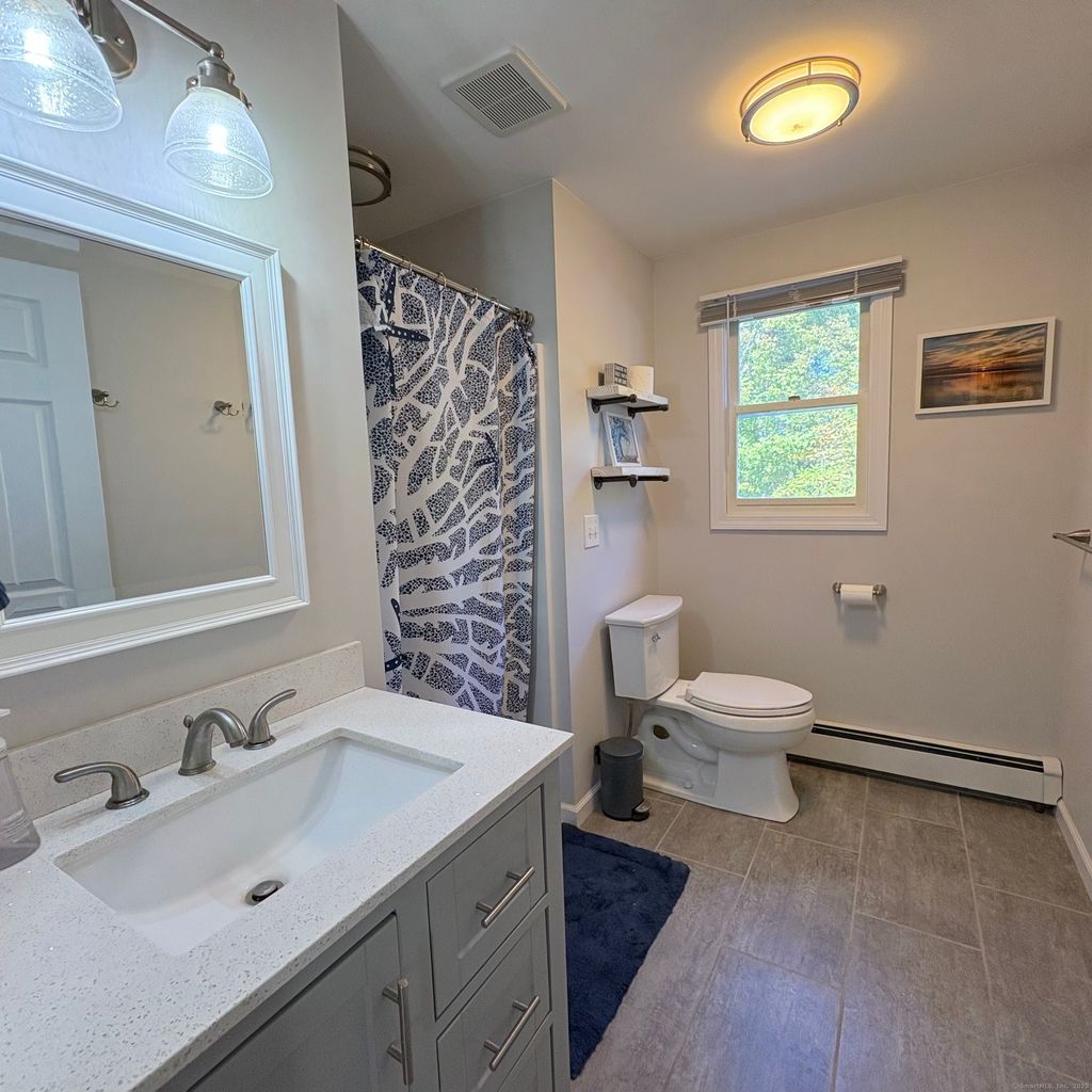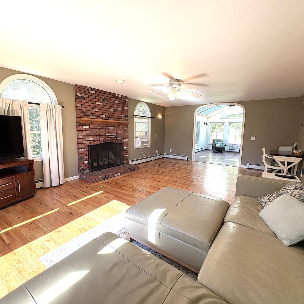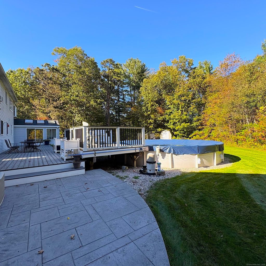 Nestled at the end of a quiet cul-de-sac, this welcoming 4 BR, 3 full bath Colonial is nicely situated on over an acre, providing a beautiful setting & much privacy. The 1st floor welcomes you with an open floor plan featuring an eat-in kitchen w/center island overlooking a large dining rm as well as a stunning fam.rm w/cathedral ceilings & skylights creating a bright & sun-filled rm. Large living rm with FP leads to a gorgeous sunroom w/cathedral ceilings, skylights, vinyl flrs & slider to an expansive deck perfect for summer gatherings. Gleaming, newly refinished hardwood flrs flow throughout much of the 1st flr. A beautifully remodeled full bath w/tile flrs & a spacious laundry/pantry room complete the main level, along w/a nice 1st flr BR.. perfect for guests or home office. Ascent to the upper level where you'll be impressed w/the primary suite featuring cathedral ceilings, fireplace, skylight & a generous walk-in dressing rm. Full bathroom offers dual sinks, jetted tub & a separate shower. 2 additional bedrooms & a beautifully updated guest bath w/quartz vanity & tiled floor complete the 2nd level. Step outside to enjoy your private backyard w/an above ground pool & sprawling deck, just perfect for entertaining or relaxing. Additional features include a 2 car garage, updated 330-gallon oil tank, newer boiler(2019) & a walkout basement offering excellent storage or future finishing potential. This home has so much to offer & in a sought-after area.. just waiting for you!
