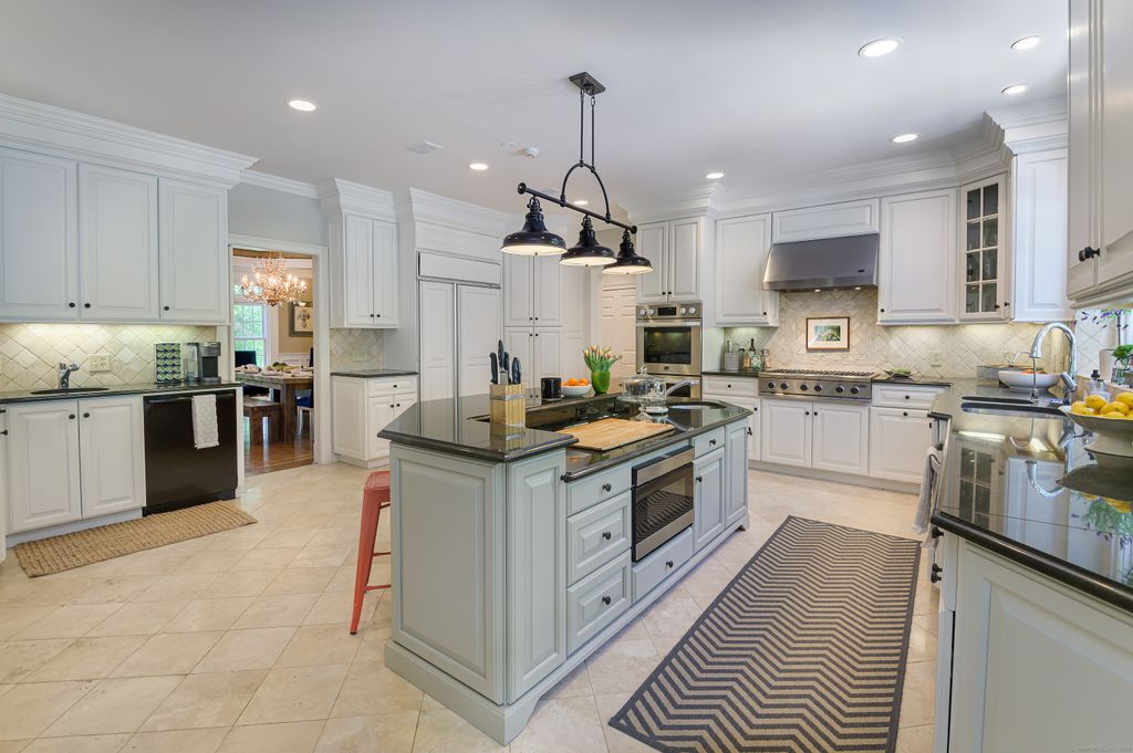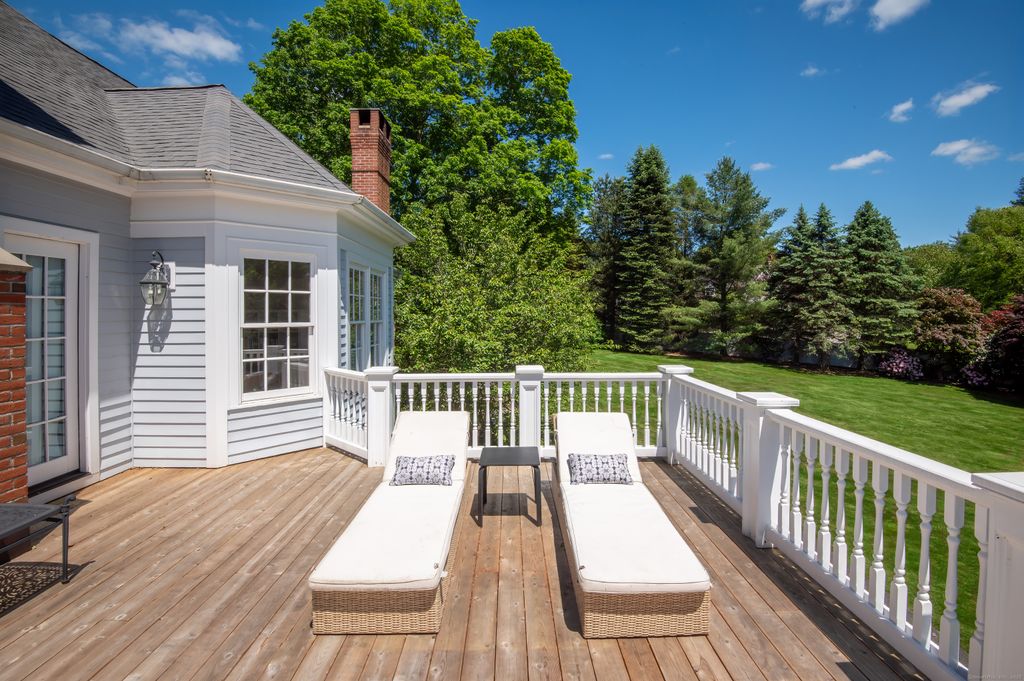 Elegantly situated in one of Fairfield County's most desirable scenic roads, this timeless Estate offers luxury and privacy on 2+acres of spectacular park-like grounds. This sophisticated residence showcases custom craftsmanship throughout, boasting tray ceilings, mahogany inlaid floors, 3 Fireplaces & oversized windows that flood the space w/natural light. Main level offers formal Living & Dining Rms w/exquisite detailing, built-in bar. Spacious gourmet Chef's KIT, featuring lovely breakfast Rm w/views of the covered patio & pool. An impressive Family Rm w/stunning atrium windows and a beautifully appointed coffered ceiling features a floor-to-ceiling stone fireplace and serene views of the amazing, private grounds. Additionally, Main level features a handsome library/comfortable home office, spacious fitness studio surrounded by walls of windows, a large mudrm + private Bedrm suite w/private entrance via French doors opening to a fieldstone patio, covered portico, and resort-like gunite pool & spa. Upstairs, the Primary Suite is a private retreat complete w/a cozy sitting Rm, fireplace, tray ceiling, custom walk-in Dressing Rms, and a private cedar sun deck. Spa-like primary ensuite bath includes radiant heated floors + luxurious steam shower. Add'l upper-level highlights include 6 ensuite BR's. A finished third floor adds an add'l 1,340 sqft. Finished LL w/dedicated exercise, entertainment & storage areas. 4 Car Garage w/charger. Minutes to Downtown! Approx. 1 HR to NYC.