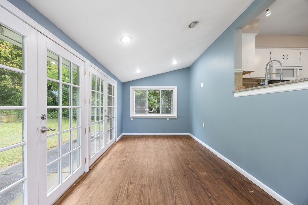 Welcome to 140 Townsend Terrace, a beautifully maintained raised ranch located on a quiet cul-de-sac in the sought-after Morris Cove neighborhood. This light and bright 3 bedroom 1.5 bath home offers a spacious open layout perfect for today's lifestyle. The inviting living room flows seamlessly into the dining area and kitchen featuring granite countertops, abundant cabinetry, and a convenient breakfast bar overlooking the main living space. Hardwood floors gleam throughout the main level, including all three bedrooms.A sun-filled sunroom provides the perfect spot to unwind while enjoying views of the private backyard with patio and deck-ideal for outdoor gatherings or quiet evenings at home. The updated full bath offers wainscoting, a quartz-top vanity, and elegant finishes. The finished lower level adds great versatility with a bonus room, bar area, half bath, laundry, and access to the one-car garage. Additional features include central air, gas heat, and a wonderful location just minutes from Lighthouse Point Park, downtown New Haven, Yale, shops, and restaurants.