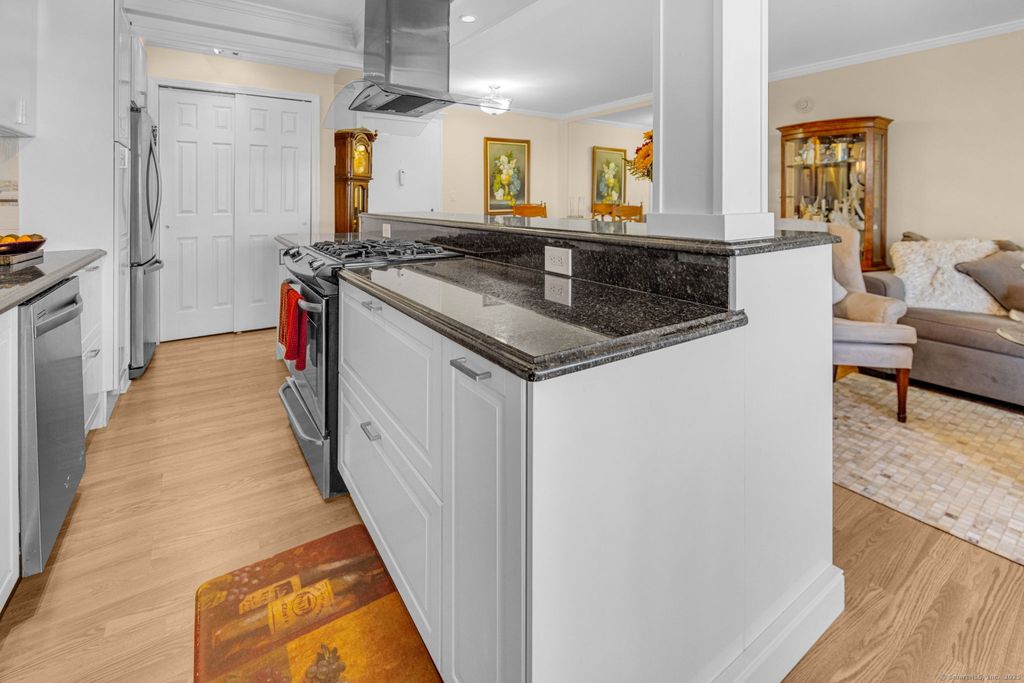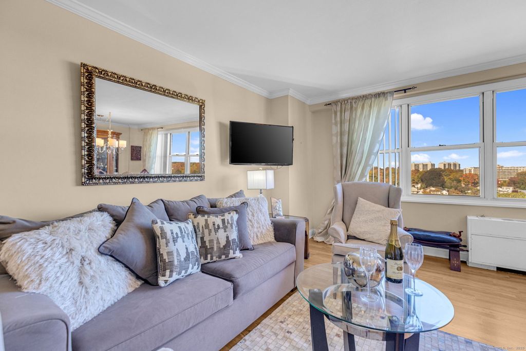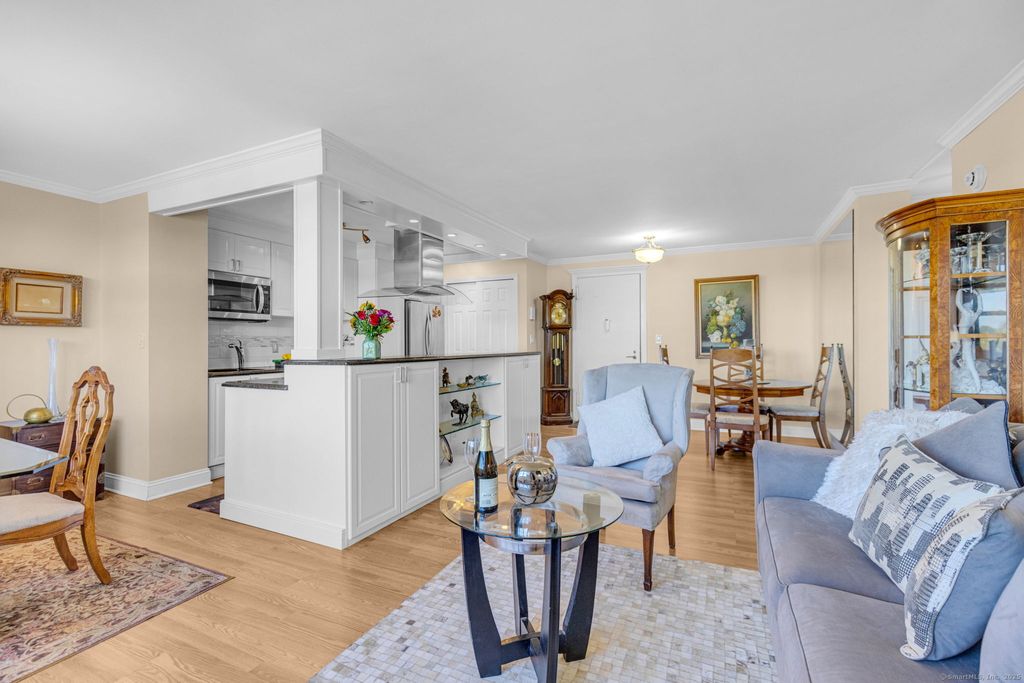 Whether you're downsizing or just tired of renting, you will love this beautifully updated one bedroom in TURN KEY condition. The finishes of this gorgeous unit will appeal to the most discerning buyer. Features include stainless steel appliances, granite countertops, custom cabinetry, plenty of closet space including a custom walk-in closet, great open floor plan and a chic bathroom. You'll enjoy the resort like Olympic sized heated pool, tennis courts, workout room, library and Green Room available to residents for entertaining friends and family. Manicured landscaped grounds and a park-like atmosphere help take you away from the daily grind! This upscale condominium offers simple, carefree living with round the clock security, assigned parking in an underground garage with additional parking outdoors and a dog park. Conveniently located to I-95, Merritt Parkway, universities and shopping, and steps away from a bus stop. Don't miss out on this beauty!