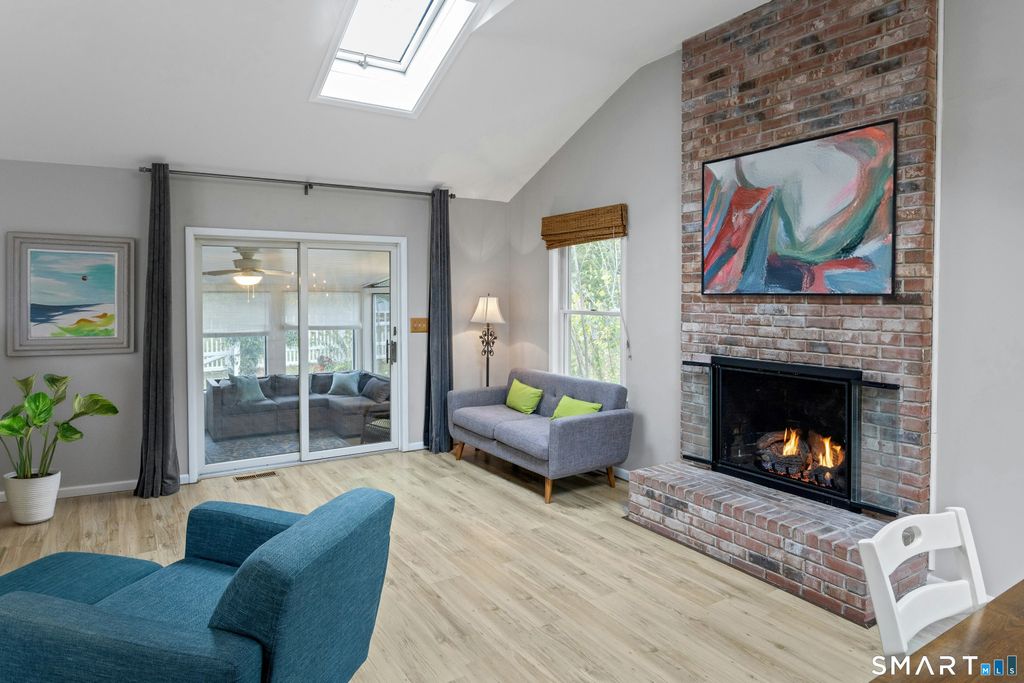 Welcome to this well-appointed 4/5 bedroom home on a charming cul-de-sac with peek-a-boo views. Everything a new owner or investor could want. The first level has a living room w/ picture window, updated kitchen, and sky-lighted family room with a gas fireplace. Sliders go out to a glorious screened-in porch. The 1st floor is completed by 3 bedrooms/2 baths (one bedroom ensuite). Ascend the side stairs for the primary domain. A cathedral-ceilinged sleeping chamber is complimented by two room-sized closets (one has had past use as an office/nursery), a primary bath with his and hers of everything, and a beautifully amenitied laundry room. Further plusses: 1100sf walk-out basement, 2 car garage which recently was fitted out as a chic studio, grassy yard with charm, and shed. For utilities, an automatic Generac generator, natural gas, central air, and tankless hot water heater for energy efficiency and convenience. A very convenient location in Milford -- the beach is a short drive or longer walk. All conveniences a short drive. A quiet and well-maintained neighborhood.