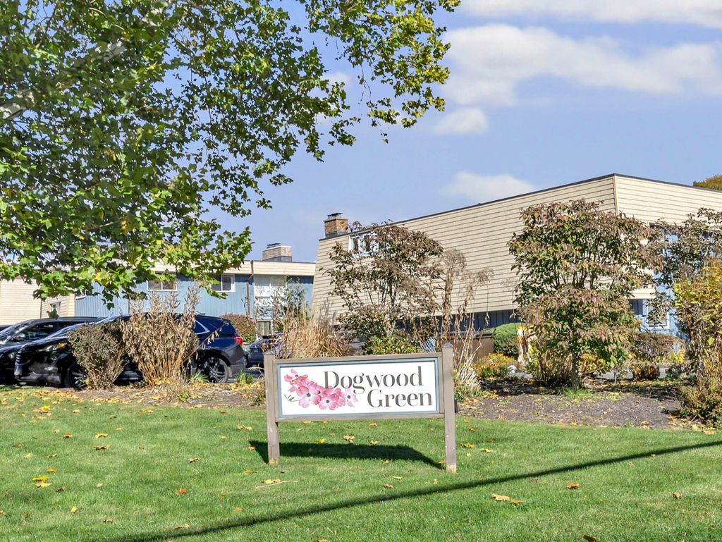 The move-in ready opportunity you've been waiting for in an unbeatable Fairfield location! This Ranch style condo has it all...soaring cathedral ceilings with sunny windows and a corner of sliders providing abundant light and serene skyline views of the lush courtyard and fountain. The inviting, oversized deck is perfect for lounging, al fresco dining, and a potted flower or herb garden. The convenient floorplan is complete with two Bedrooms, multiple large closets, two Full Bathrooms with marble countertops...one with an oversized walk-in shower, a spacious eat-in Kitchen with room for an island or table or both. Looking for low maintenance?...the HVAC with heat pump is 2 years NEW, the windows and sliders are newer, the easy care laminate wood flooring throughout the Living and Dining Rooms is pristine. Walkable to Stratfield Elementary and Warde High Schools, a variety of restaurants, and banking...plus just 1 mile to all the Black Rock Turnpike shopping district has to offer. Bring your personal touches and settle into the easy Dogwood Green lifestyle. Minutes to beaches, Fairfield Metro train station, Sacred Heart and Fairfield University and more!