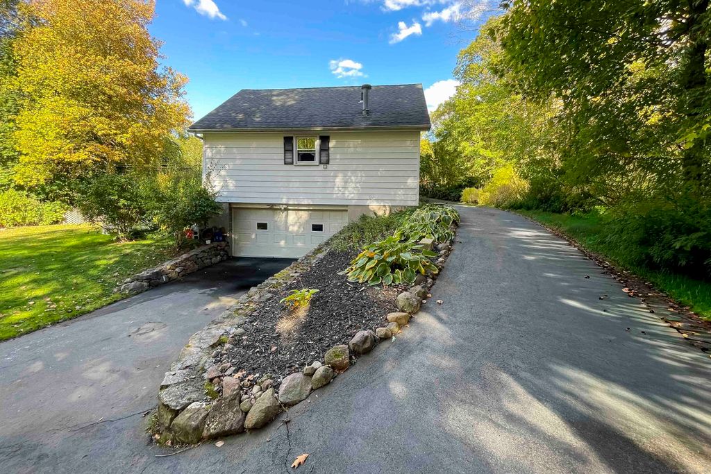 Pretty ranch home offers all the charm of a cozy cottage with the space you'll need for comfortable living. Set on nearly 3/4 acre private lot, this home features a partially finished walk-out lower level, efficient natural-gas heating, and two car garage. Step into the open main living space with dining area featuring a vaulted ceiling, skylights, toasty gas-log stove, and built-in shelving. The kitchen with stainless steel appliances and newly tiled floor leads to the three main-level bedrooms, including a primary suite with full bath and two closets. A mudroom/office area leads to the lower level consisting of a spacious den with another cozy gas-log stove, a separate room being used as a bedroom, and laundry room. Step outside to enjoy the lovely private yard with plenty of room for gardening, play, or simply relaxing in nature. Only one mile from Quinnipiac University, Sleeping Giant Park and the Farmington Canal Trail! Welcome Home!