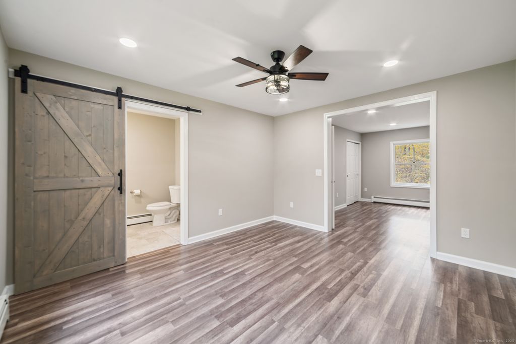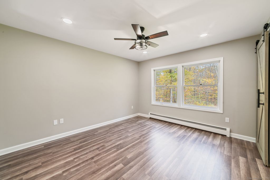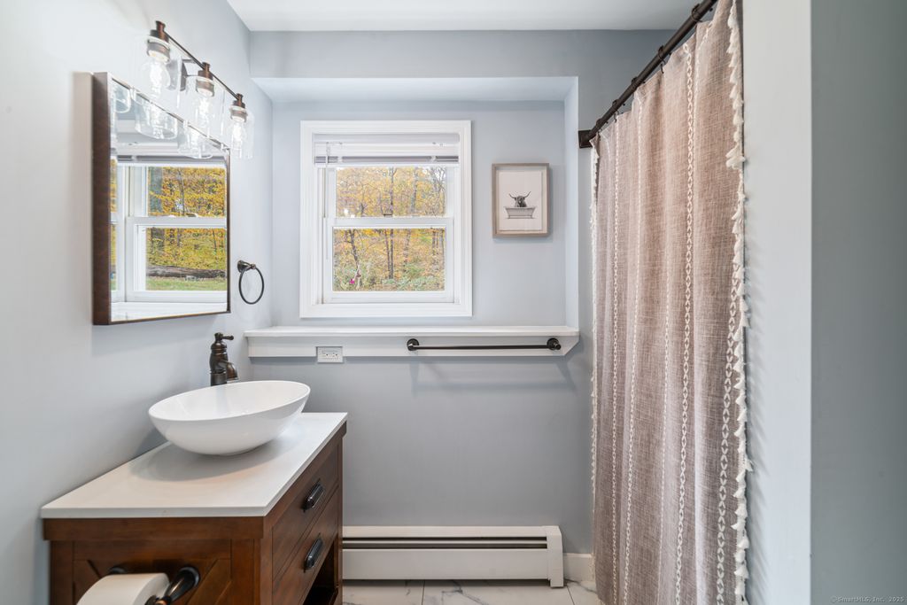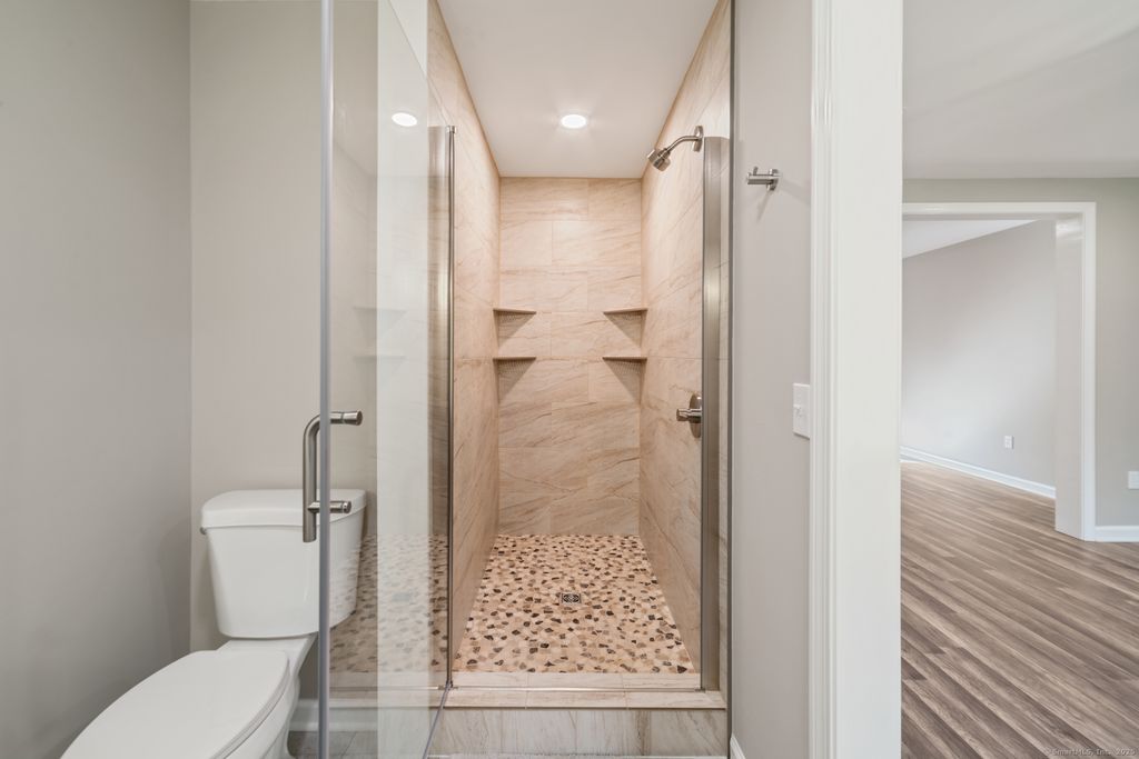 COMPLETELY REMODELED OVERSIZED RAISED RANCH on nearly 4 PRIVATE ACRES in Southbury - the perfect blend of modern comfort and peaceful country living. Step inside to find a fully refreshed interior featuring new luxury vinyl plank flooring, recessed lighting, and freshly painted walls that create a bright, welcoming atmosphere. Each of the three full bathrooms has been beautifully remodeled, including a stunning primary suite with a fully tiled walk-in shower. Every detail has been thoughtfully updated - from new outlets and select dimmer switches to upgraded fixtures that elevate every room. The finished lower level expands your living space with options for a home office, gym, playroom, or guest suite. A spacious two-car garage offers plenty of additional storage for tools and seasonal gear. Outside, relax and unwind on your private deck overlooking nearly four wooded acres - complete with berry bushes, flowering gardens, a pond, and meandering walking trails. The setting offers remarkable privacy while being just minutes from I-84, Route 67, and Pomperaug High School. Major updates ensure true peace of mind: a new roof in 2024 (with transferable warranty), new siding in 2017 and new well pump in 2022. Move right in and enjoy a home that has been completely reimagined with quality, care, and attention to detail. Experience the perfect mix of serene country living and convenient access to town amenities - your beautifully renovated Southbury retreat.