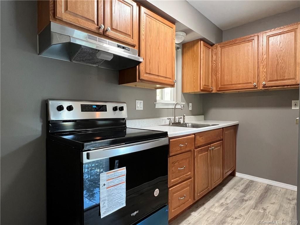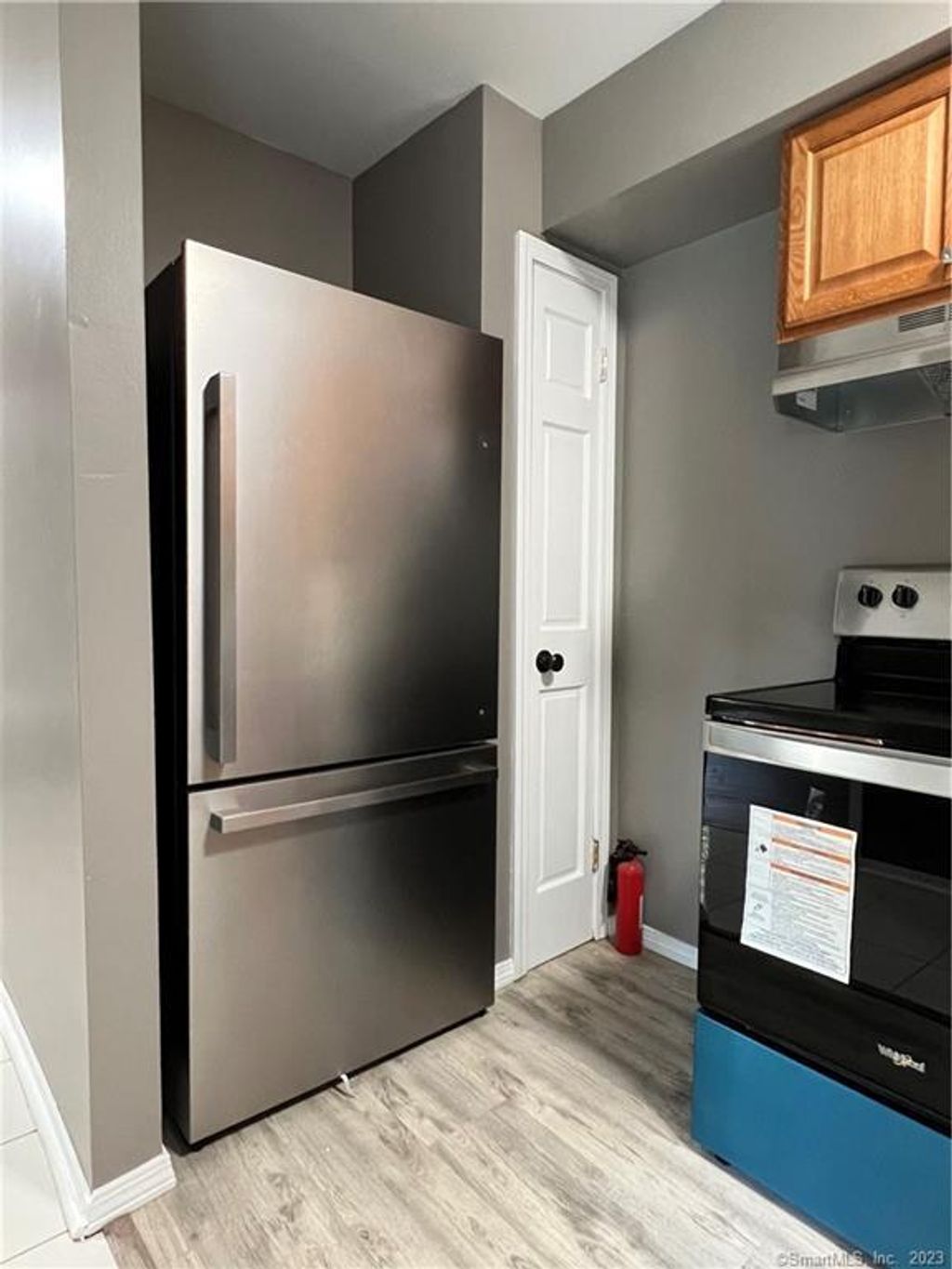 Two bedroom main level unit, newer laminate flooring, move in condition. Living room, new appliances and slider to patio. Well maintained complex, level, park-like setting with walking trail and pond, near shopping and historic Bethel downtown. 1.3 miles to Metro-North Bethel train station. Background check, evictions check, criminal record check, and credit check are required. Must have verifiable/qualifying proof of income. Photos from last year, tenant in process of moving out.