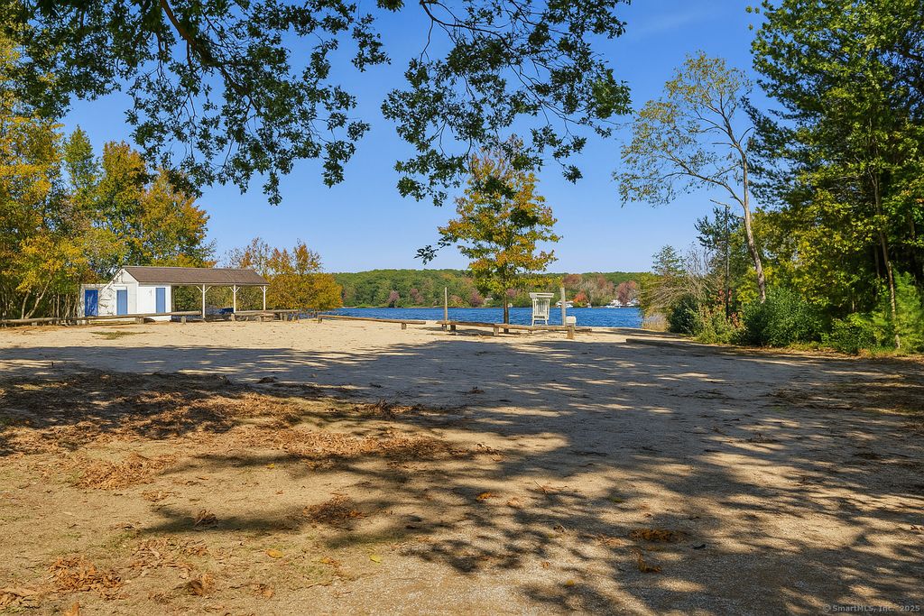 Life at the lake has never looked so good! Wake up to the gentle shimmer of Andover Lake and unwind on your deck with peaceful, peek-a-boo water views in this cozy, beautifully remodeled ranch. This 2-bedroom, 1-bath gem blends comfort and style with its full-size granite kitchen complete with tile backsplash, gleaming wood floors, and designer touches throughout. The renovated bath features elegant block glass, while pocket doors and newer appliances add a modern flair. Enjoy peace of mind from the many recent upgrades including a new roof, new chimney top with repointing (2018), and updated washer and dryer. Outside, professional stonework, retaining walls, a paver patio, and a deck create a perfect setting for outdoor relaxation or entertaining under the stars. The fireplace adds cozy charm on cooler nights. Nestled on a quarter-acre lot just steps from the optional Andover Lake HOA beach-one of the cleanest lakes in Connecticut-this home offers an unbeatable combination of tranquility and convenience. Whether you're looking for a year-round retreat or the perfect seasonal escape, this move-in ready lake home invites you to capture the best of New England's natural beauty and make every day feel like vacation.
