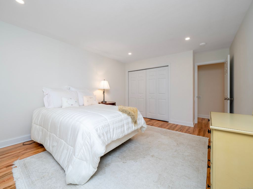 Fully renovated 2BR main level condo in the heart of downtown Ridgefield -- only one step into the unit! Move right in to this bright and spacious unit that has gleaming hardwood floors and modern upgrades throughout! The kitchen boasts quartz counters, white cabinetry, a large pantry, and stainless GE appliances. An open living/dining room combination offers a wonderful flow, with sliders to a private patio that overlooks gorgeous flowering trees in season. Two spacious bedrooms shared a renovated bath. Lots of storage space in this unit! For ease and convenience, the assigned parking space is right outside the door and a personal storage unit and laundry are easily accessed in the basement. Enjoy the clubhouse, in-ground pool and tennis courts in the warmer months as well as nearby Main Street year-round, which features wonderful shopping/dining options and much more! Don't miss this one!