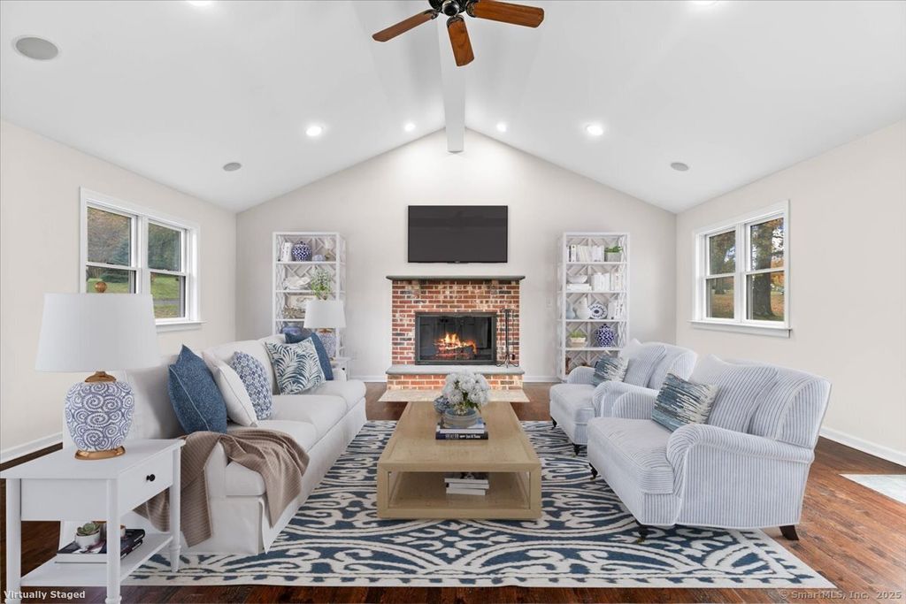 Fabulous Colonial on a quiet street in the heart of southern Cheshire! The oversized rooms, flexible floorplan, and many updates make this the perfect home for you! A welcoming formal Living Room leads to a spacious Dining Area with terrific flow for entertaining and everyday living. The open-concept Kitchen has stainless steel appliances, a breakfast bar, and ample storage. An enormous first-floor Family Room is the heart of the home, with vaulted ceilings, raised-hearth wood-burning fireplace with bluestone mantle, and access to patio & yard. An oversized Primary Bedroom, second Bedroom, and Full Bathroom complete the first floor. Upstairs, you'll find two additional spacious Bedrooms, a dedicated office, plus a second Full Bathroom. Outside, a large paver patio and wood deck overlook the lovely yard. Updates and amenities include: brand new roof (2025), refinished hardwood floors (2025), new carpets in 3 BR's (2025), new interior paint (2025), central air conditioning (2019), 200 amp electrical system, hydroair heating system, vinyl siding, 2 car attached garage, and leaf guard gutter system. Ideally situated in a walkable, quiet neighborhood yet minutes to shopping, restaurants, and Route 10. This is the home you've been waiting for!